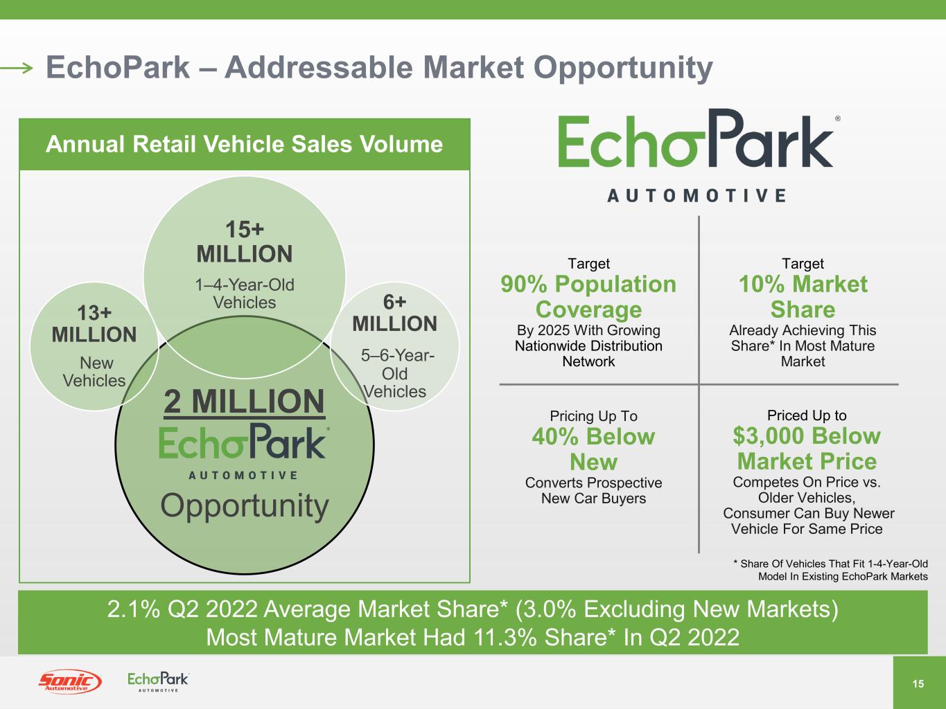 -現在の市場における1~4歳車セグメントでのEchoParkのシェアは2.1%(同一市場ベースでは1~4歳車セグメントでのEchoParkのシェアは3.0%)。