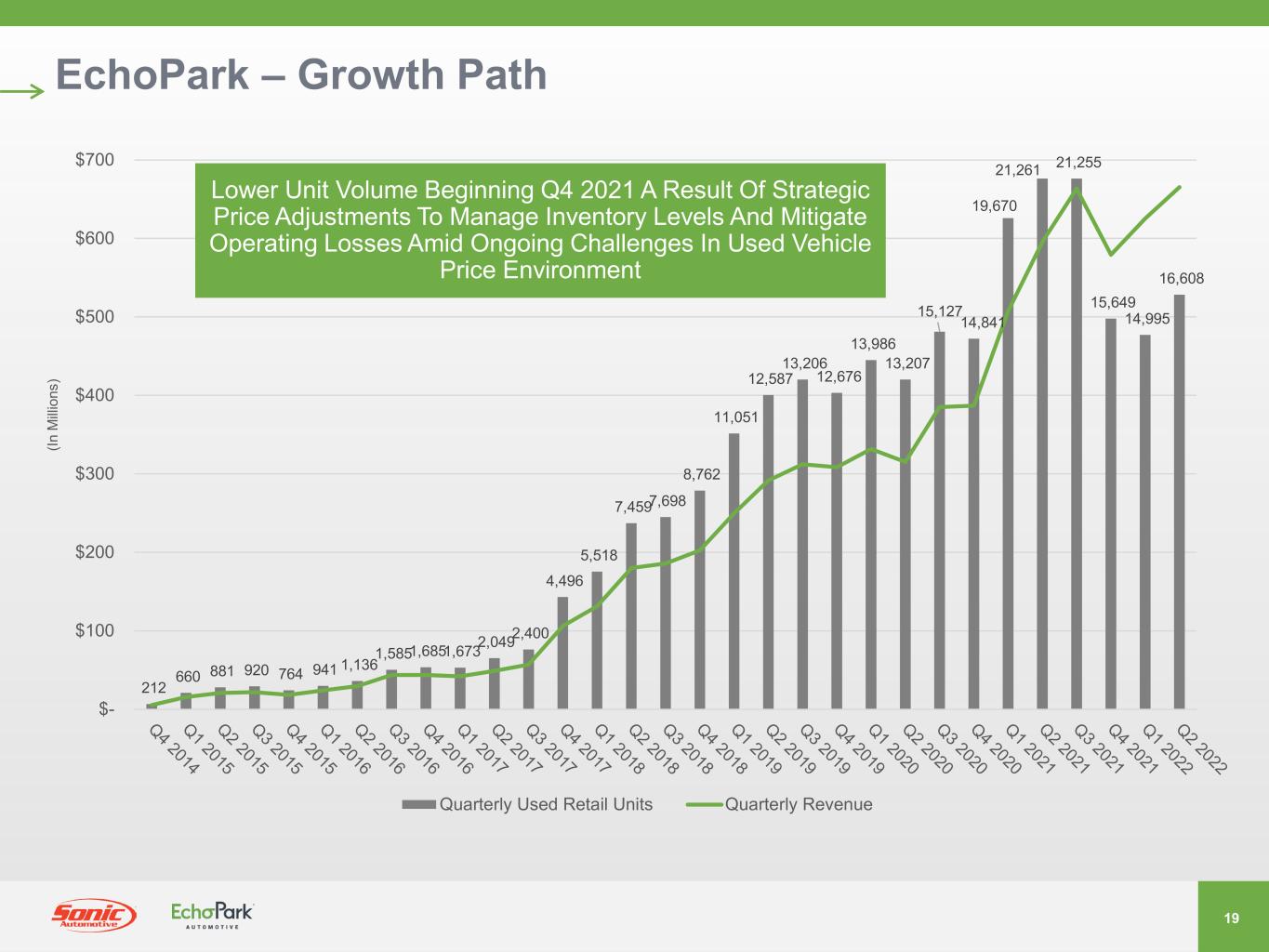 -四半期ベースのEchoPark売上高は、前年同期比12%増の6億6,560万ドルとなり、過去最高を記録。