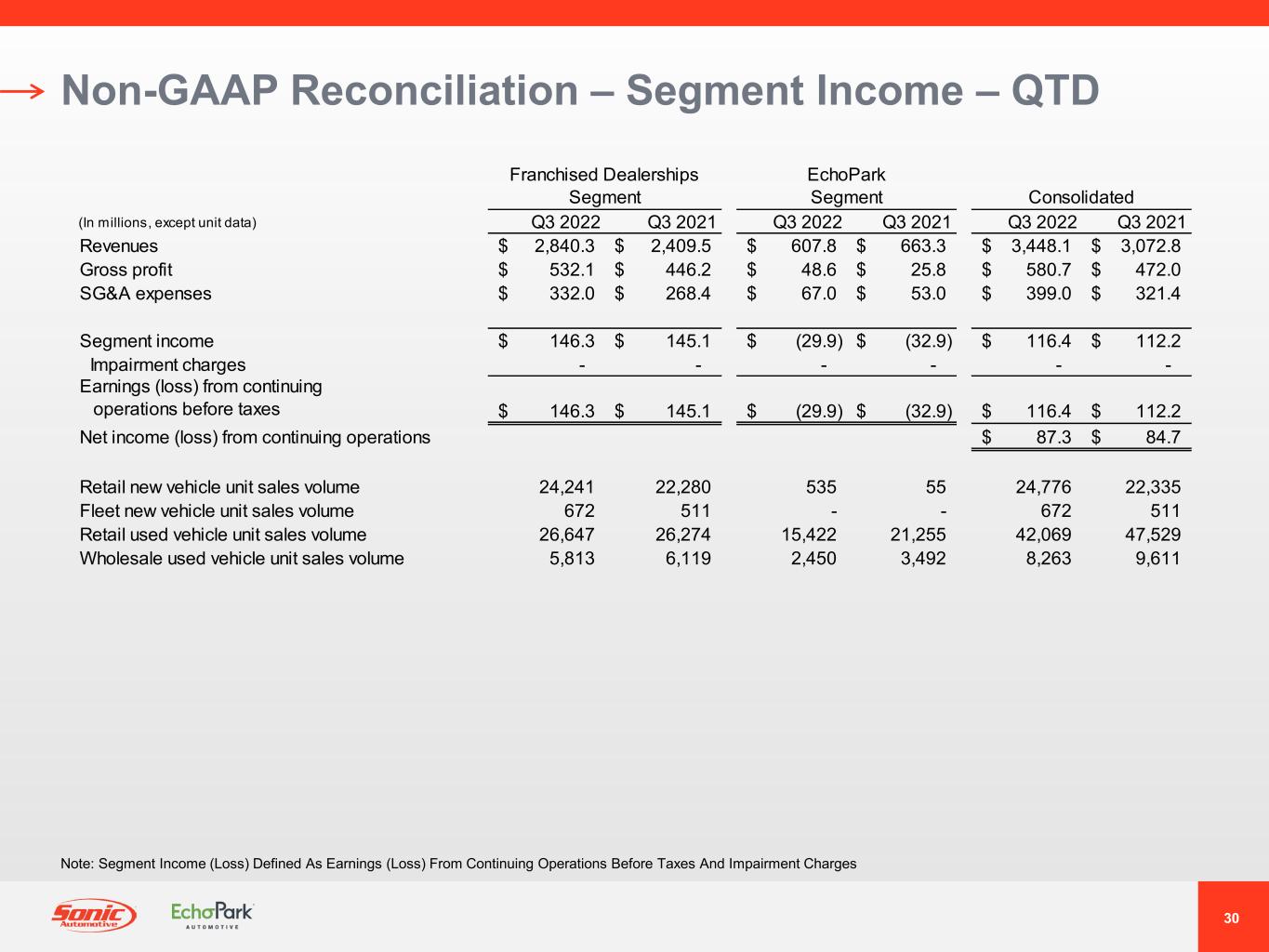 | Franchised Dealerships Segment | EchoPark Segment | Discontinued Operations | Total | Franchised Dealerships Segment | EchoPark Segment | Discontinued Operations | Total | ||||||||||||||||||||||||||||||||||||||||