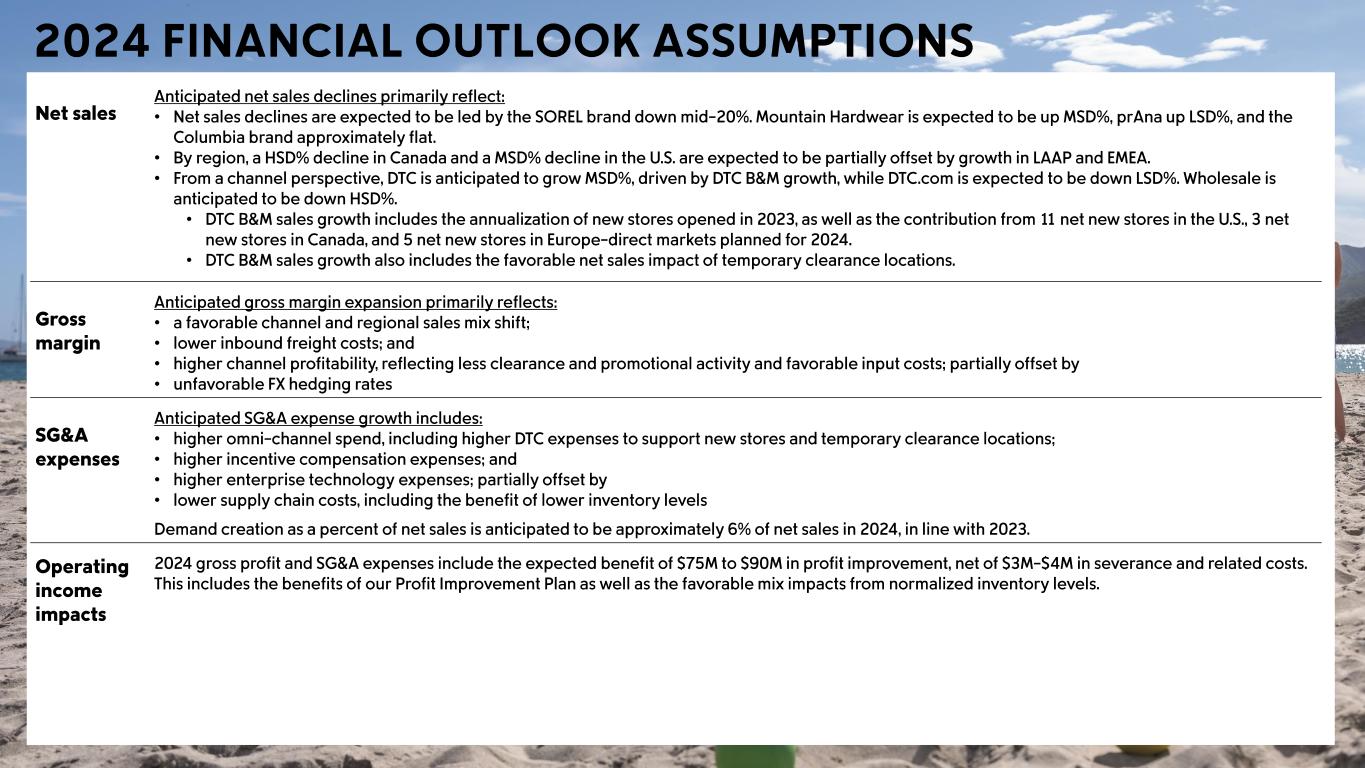 •Net sales of $3.35 to $3.42 billion (unchanged), representing a net sales decline of 4.0 to 2.0 percent (unchanged) compared to 2023.