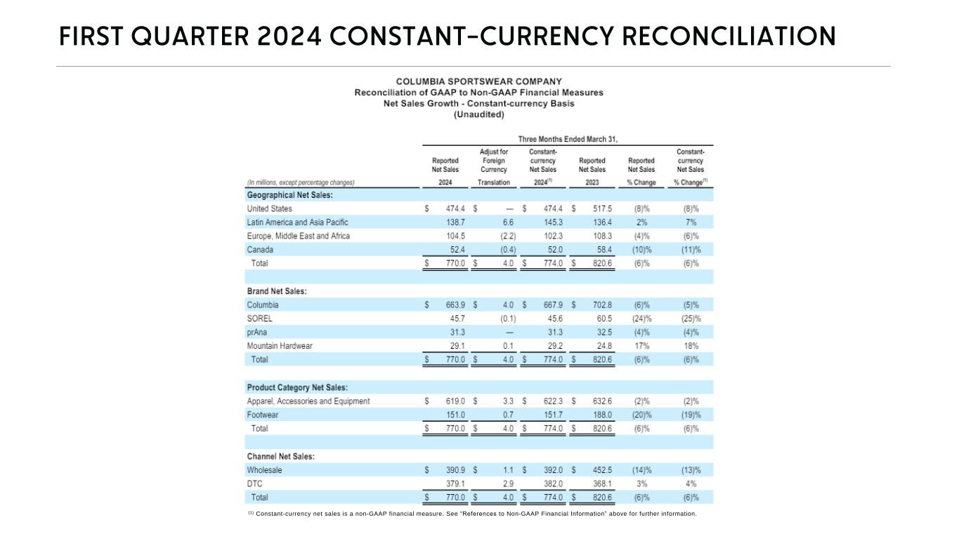 Columbia Sportswear Company Reports First Quarter 2024 Financial Results;