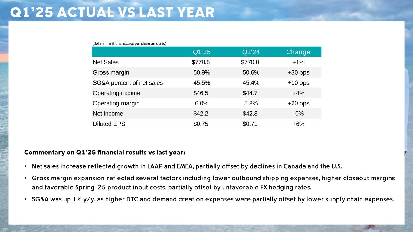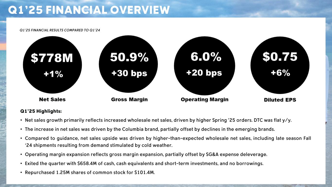 コロンビア・スポーツウェア・カンパニー、2025年第1四半期決算を発表;