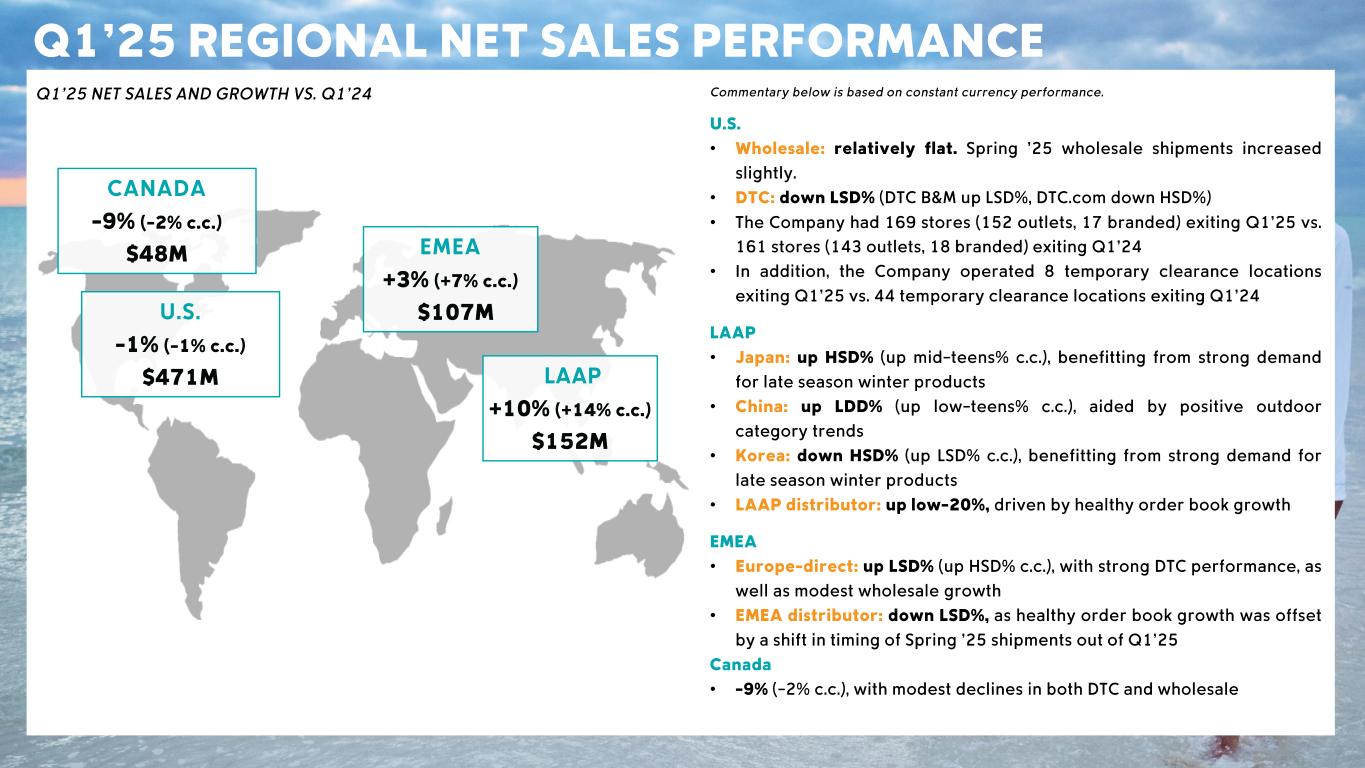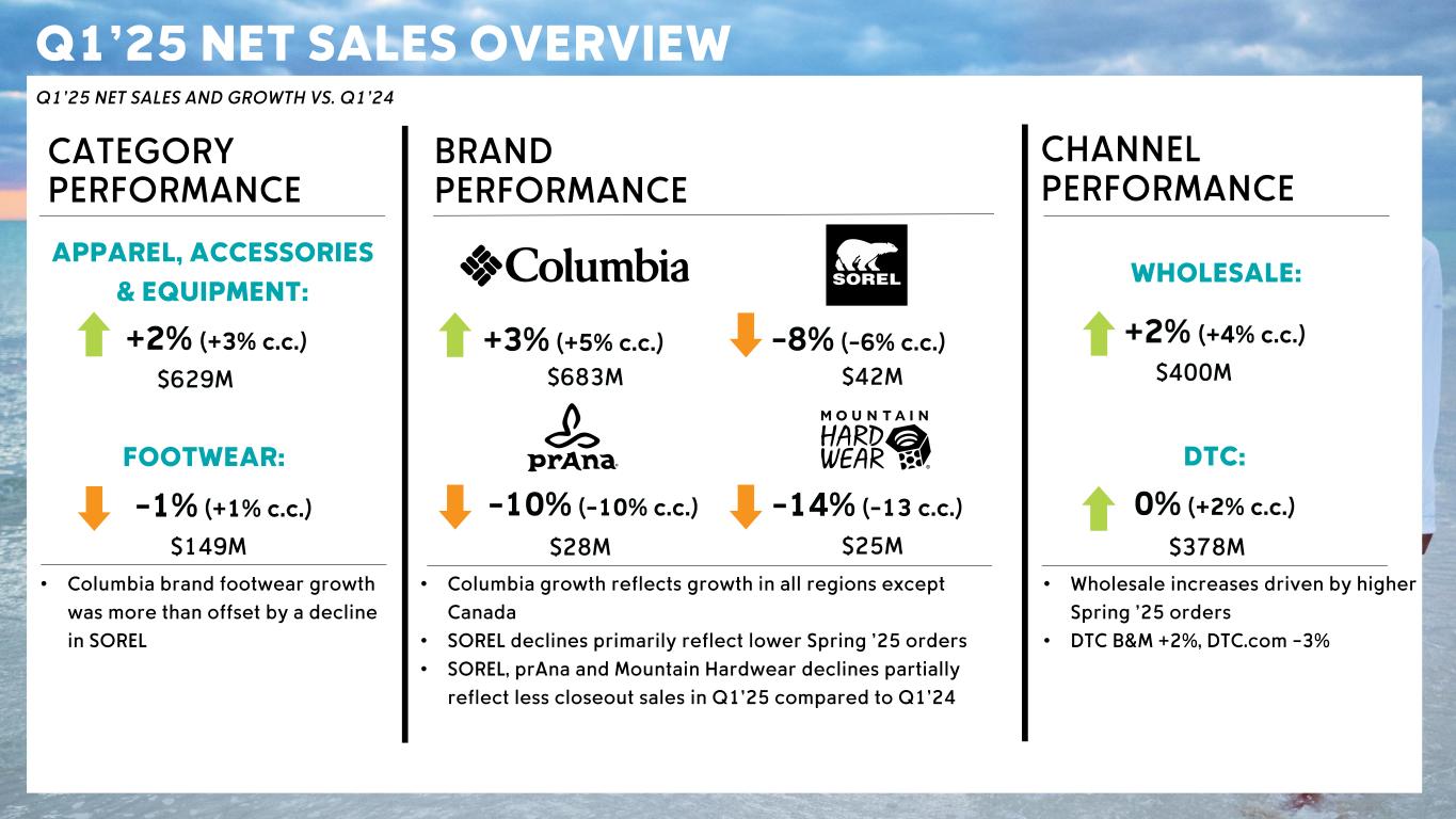 オレゴン州ポートランド-2025年5月1日-アパレル、フットウェア、アクセサリー、用具など、アウトドア、アクティブ、ライフスタイル製品のマルチブランドで世界をリードするイノベーター、コロンビア・スポーツウェア・カンパニー(NASDAQ: COLM、以下「コロンビア」)は本日、2025年3月31日を期末とする2025年第1四半期決算を発表した。