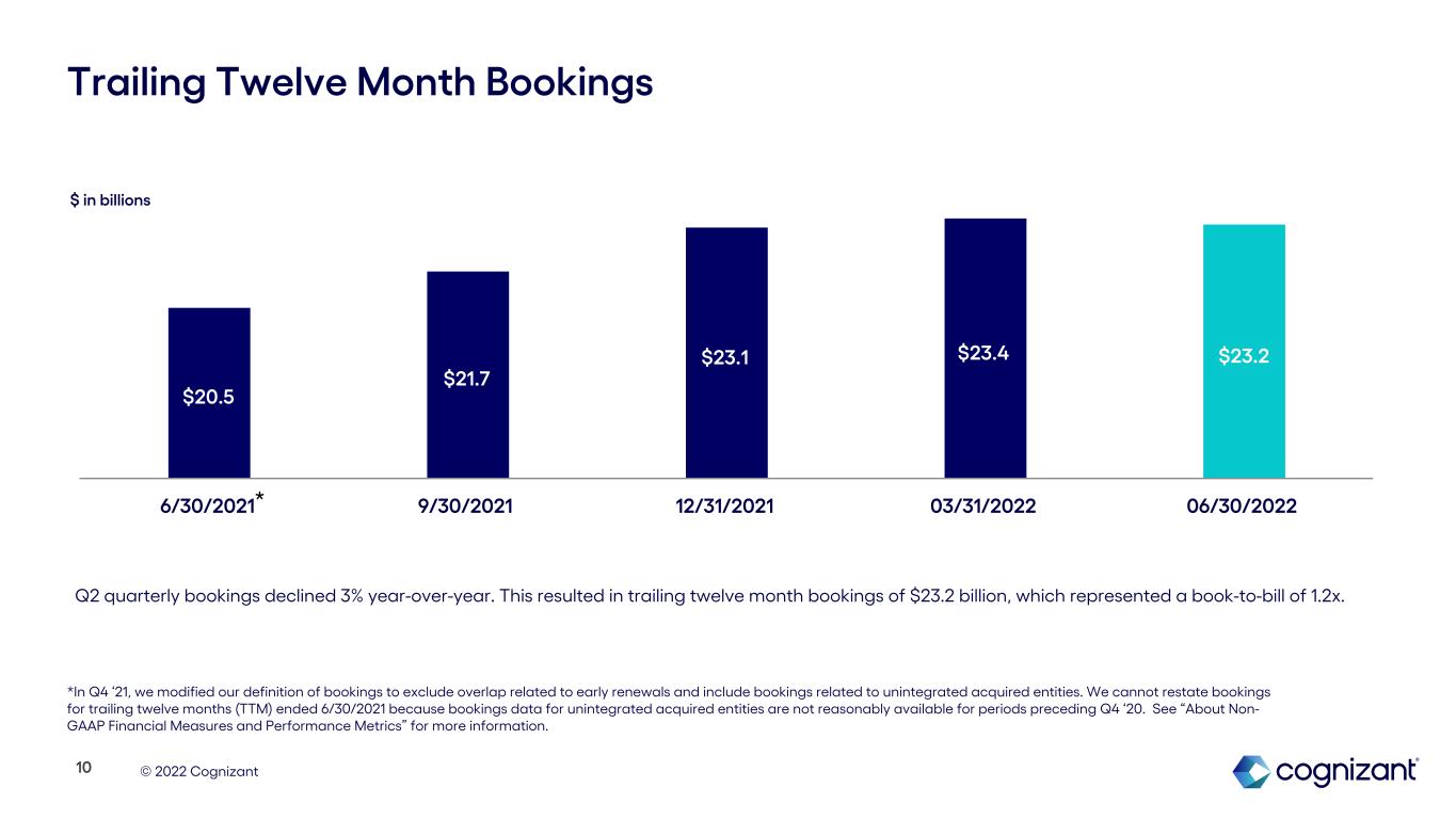 Q2 bookings declined 3% year-over-year. This resulted in trailing 12-month bookings of $23.2 billion, which represented a book-to-bill of approximately 1.2x.