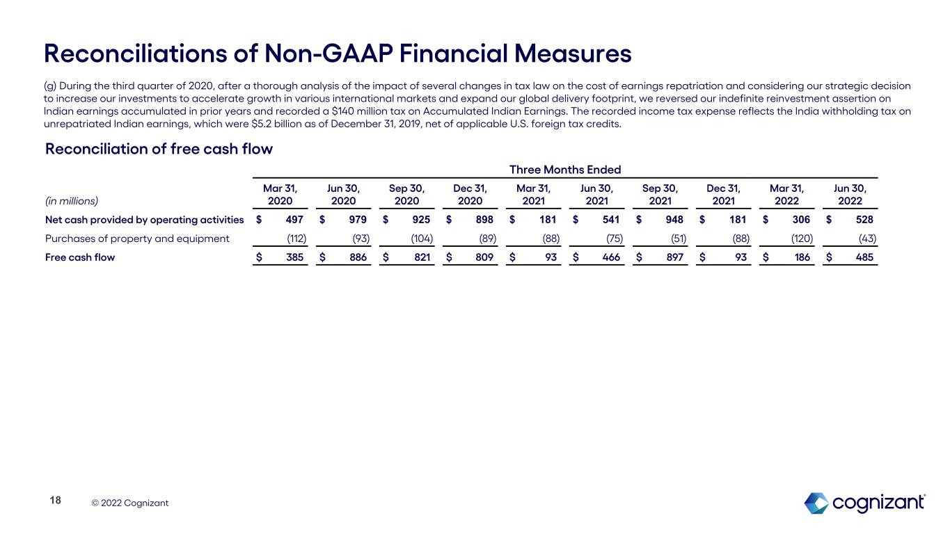 TEANECK, N.J., July 27, 2022 - Cognizant (Nasdaq: CTSH), one of the world’s leading professional services companies, today announced its second quarter 2022 financial results.