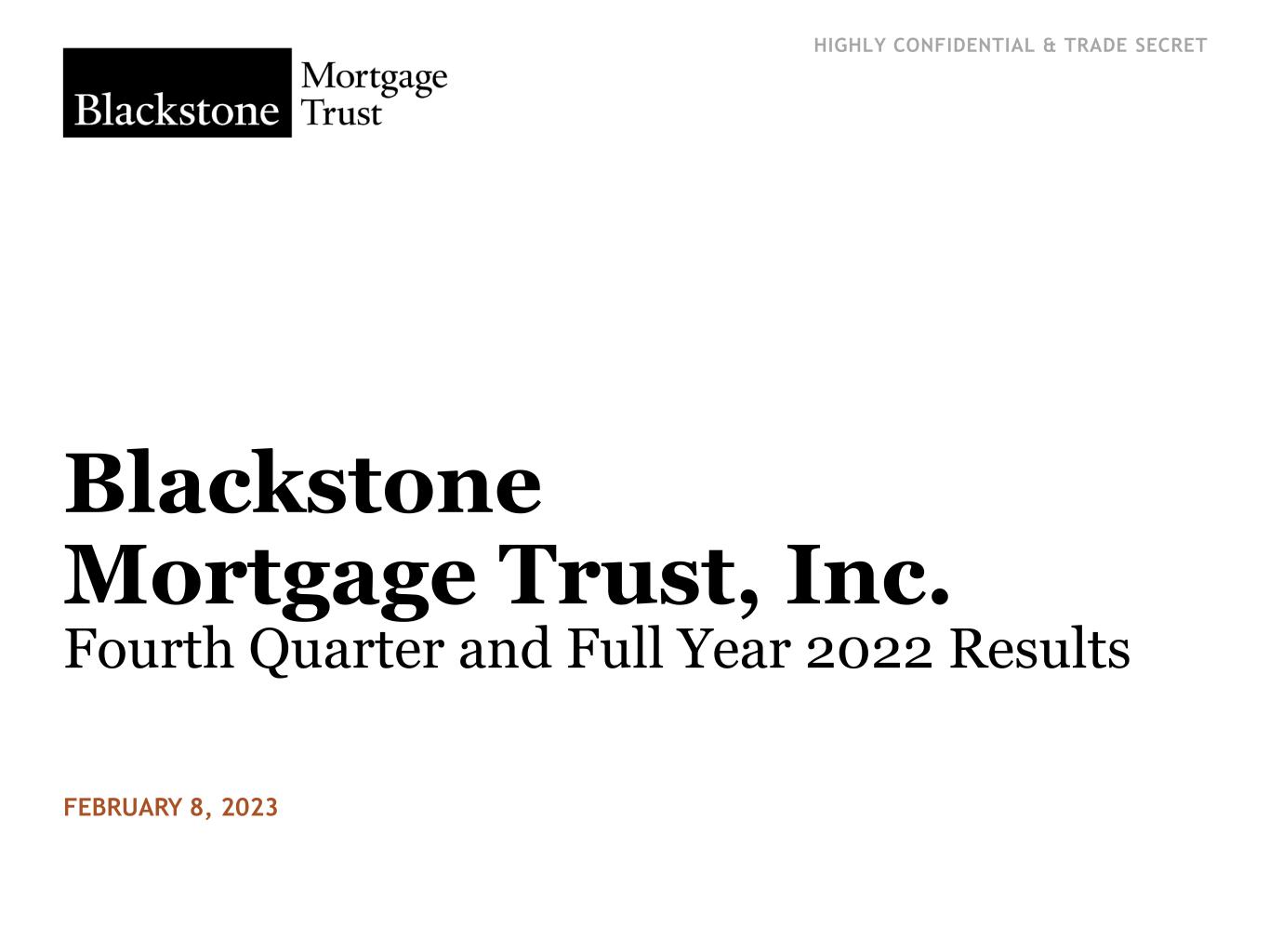 HIGHLY CONFIDENTIAL & TRADE SECRET Blackstone Mortgage Trust, Inc. Blackstone Mortgage Trust, Inc. Blackstone Mortgage Trust, Inc. Fourth Quarter and Full Year 2022 Results FEBRUARY 8, 2023