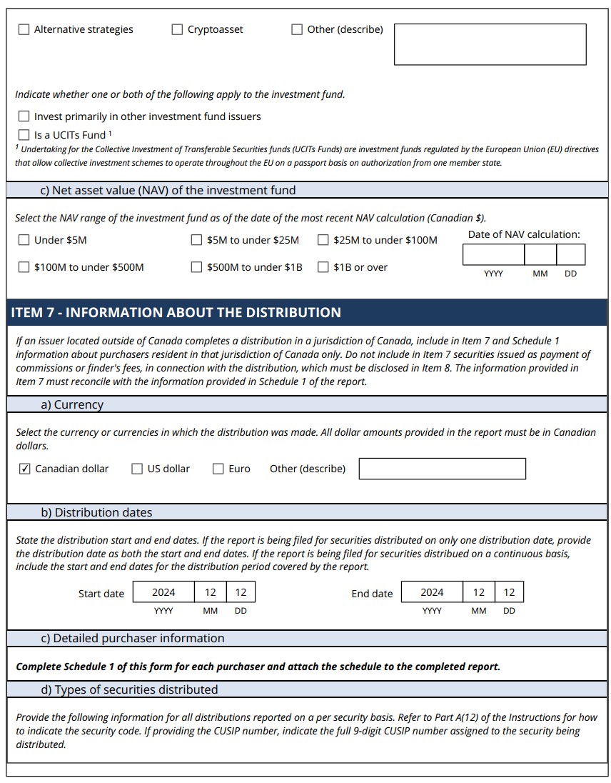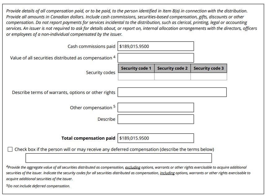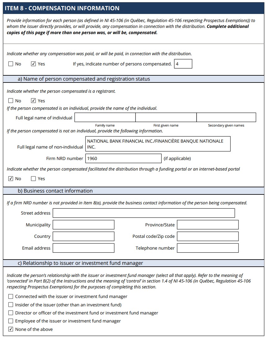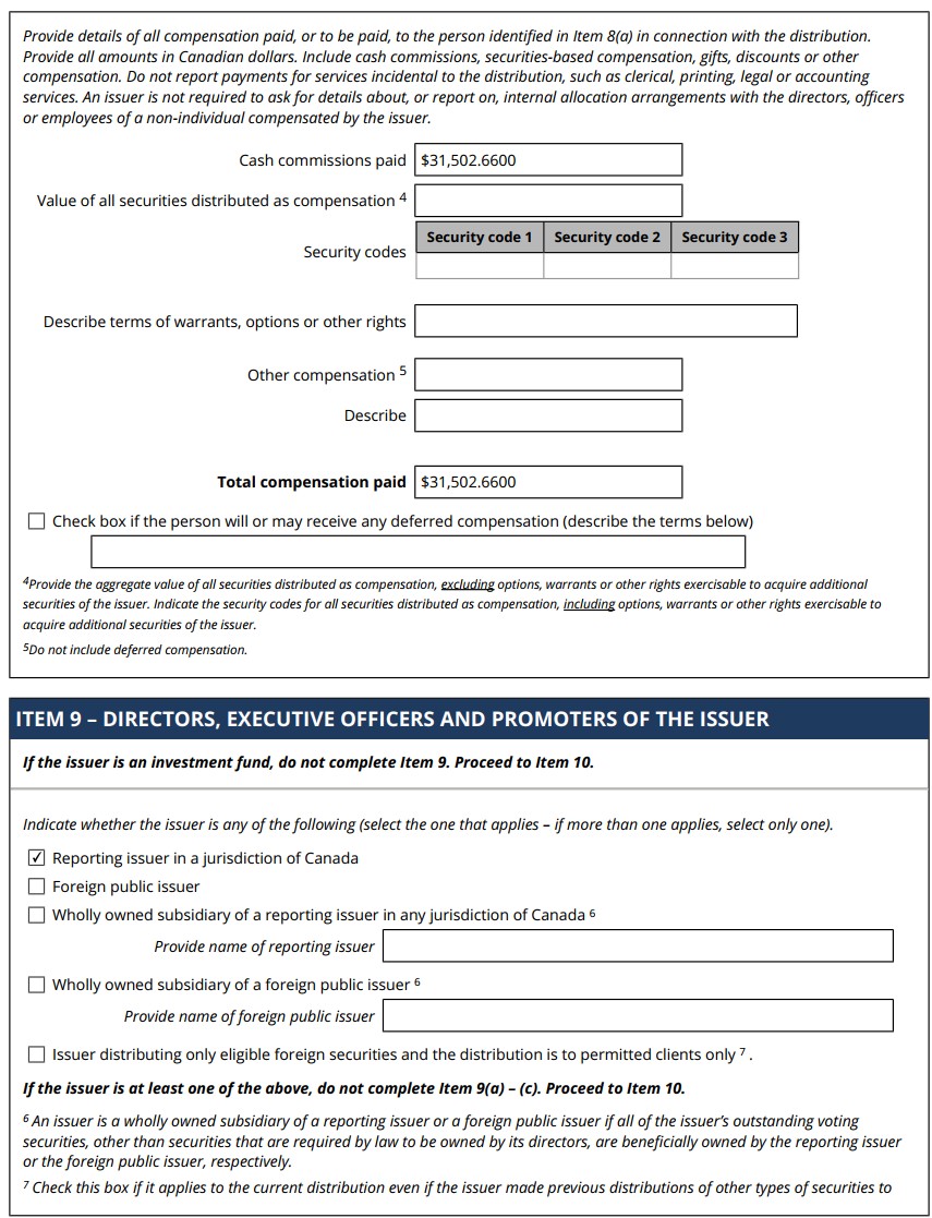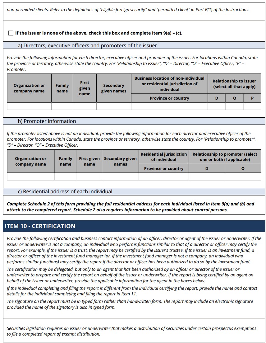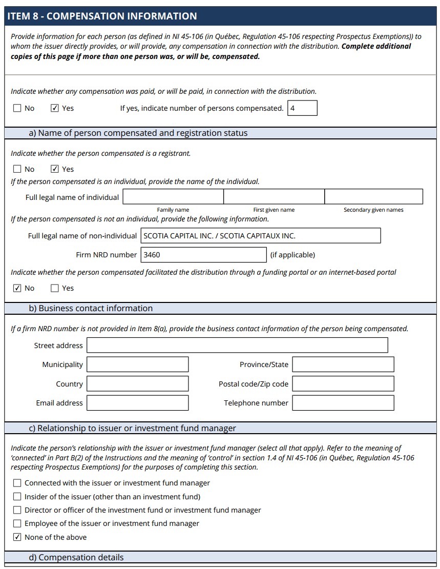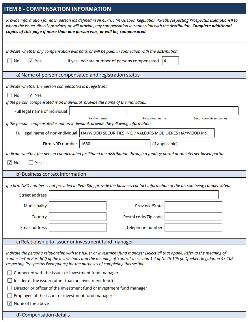 | 99.1 | Form 45-106F1 Report of Exempt Distribution |