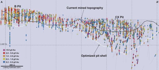 Notes to table above: I. The effective date of the mineral resources estimate is May 4, 2021. II. The qualified persons for the estimate are Terre Lane QP-MMSA and Hamid Samari QP-MMSA of GRE, Inc. III. Mineral resources, which are not mineral reserves, do not have demonstrated economic viability. The estimate of mineral resources may be materially affected by environmental, permitting, legal, title, socio-political, marketing, or other relevant factors. Mineral resources are not ore reserves and are not demonstrably economically recoverable. IV. Mineral resources are reported at a 0.30 g/t cutoff, an assumed gold price of 2,040 $/tr. oz, using variable recovery, a slope angle of 41 degrees, 6% royalty, heap leach processing cost $9.04 per tonne (includes admin costs), CIL processing cost of $17.22 per tonne (includes admin costs). V. An inferred mineral resource is that part of a mineral resource for which quantity and grade or quality are estimated on the basis of limited geological evidence and sampling. Geological evidence is sufficient to imply but not verify geological and grade or quality continuity. An inferred mineral resource has a lower level of confidence than that applying to an indicated mineral resource and must not be converted to a mineral reserve. It is reasonably expected that the majority of inferred mineral resources could be upgraded to indicated mineral resources with continued exploration. VI. The reference point for mineral resources is in situ. |