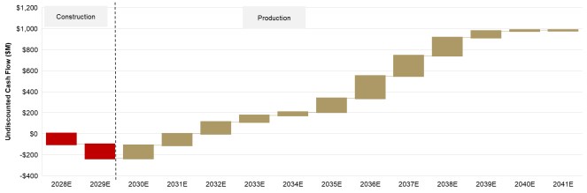 (2) Cash flow and NPV are calculated as of the start of construction, which is anticipated to commence in early 2028, subject to obtaining the necessary permits by December 31, 2027, as anticipated.