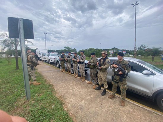 Photo: Security team overseeing the safe transport of HIVE's Bitcoin mining equipment to Yguazú.