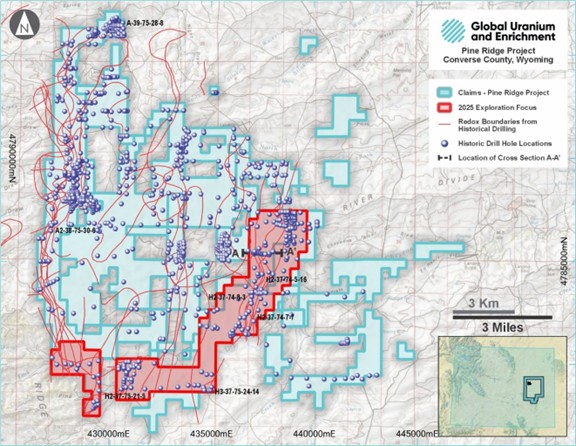 "The potential for Pine Ridge to become a tier-one uranium asset in the United States is precisely the reason why we entered into the 50/50 joint venture with Global Uranium and Enrichment Limited (GUE)" said Frank Wheatley, CEO of Snow Lake. "The tireless work by GUE over the past 12 months to secure Pine Ridge, and to dramatically expand the project footprint, sets the stage for the initiation of a maiden drill program by our joint venture at Pine Ridge."