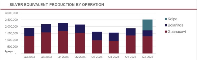 | Silver equivalent production (ounces) | 1,282,853 | 440,678 | 805,032 | 2,528,562 | ||||||||