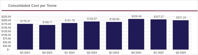 | Realized zinc price per tonne | $ | 2,847 | - | $ | 2,847 | - | ||||||