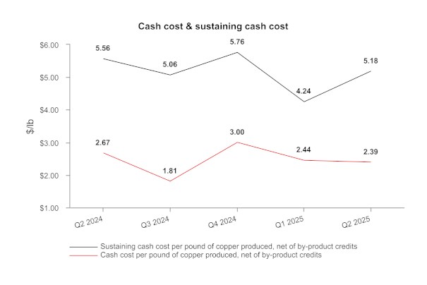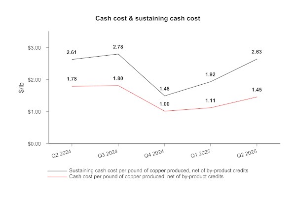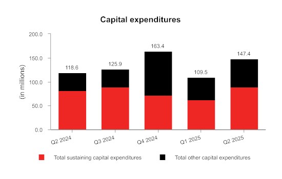 2 Excludes $3.2 million (C$14 per tonne) of overhead costs incurred during temporary suspension during the three months ended June 30, 2025.