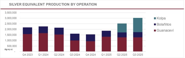 1) inclusive of 212,691 oz of silver from pre-operating production at Terronera during three months and 240,321 oz during the nine months ended September 30, 2025