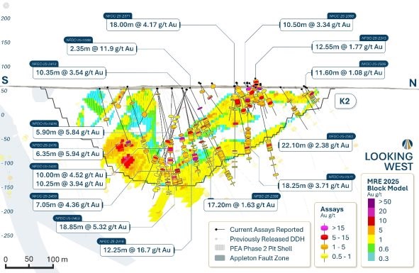 Melissa Render, President of New Found Gold stated: "Infill drilling of the AFZC Phase 1 open pits at K2 and Jackpot at Queensway continues to demonstrate good continuity of gold mineralization and a good correlation with the initial MRE. As part of this phase of our 2025 campaign, we drilled deeper than the previously tested limits of mineralization at K2. We were encouraged to encounter a broad interval of gold mineralization, highlighting the zone's potential for expansion to depth."