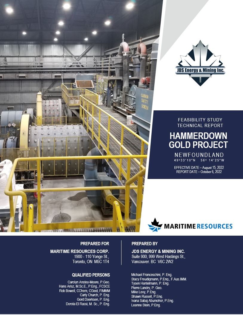 This report entitled NI 43-101 Feasibility Study Technical Report for the Hammerdown Project, effective as of August 15, 2022 was prepared and signed by the following authors: