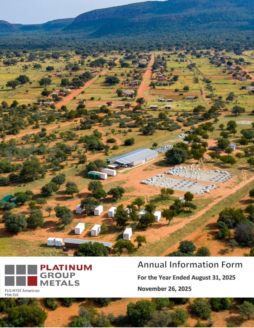 The following documents, filed as Exhibits 99.1, 99.2, 99.3, and 99.14 to this Annual Report on Form 40-F of Platinum Group Metals Ltd. (the "Registrant" or the "Company"), are hereby incorporated by reference into this Annual Report: