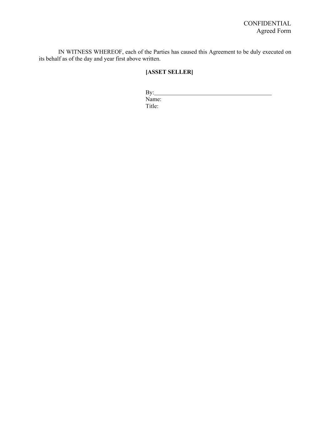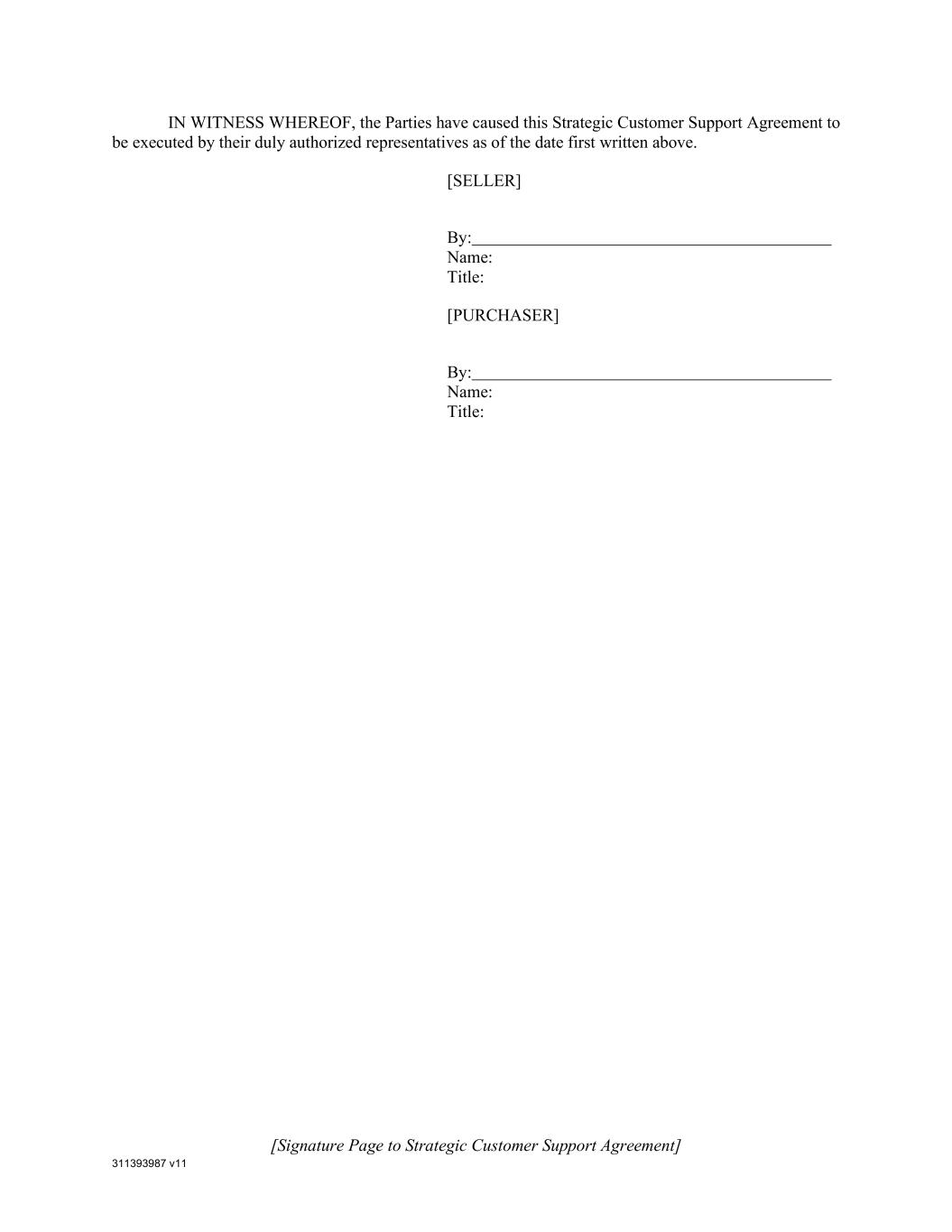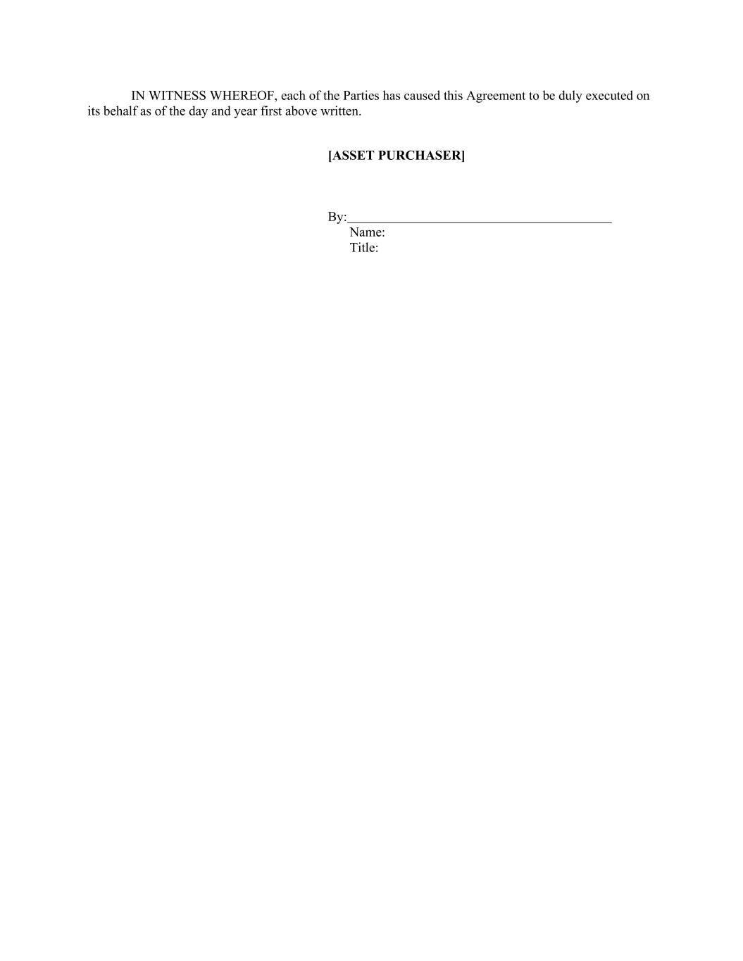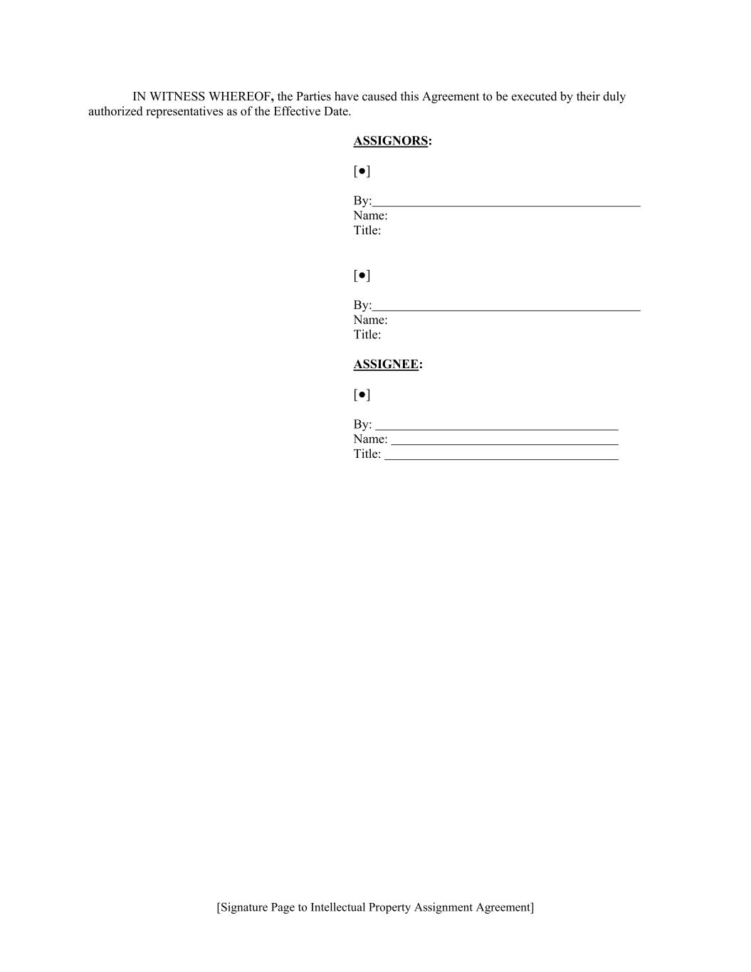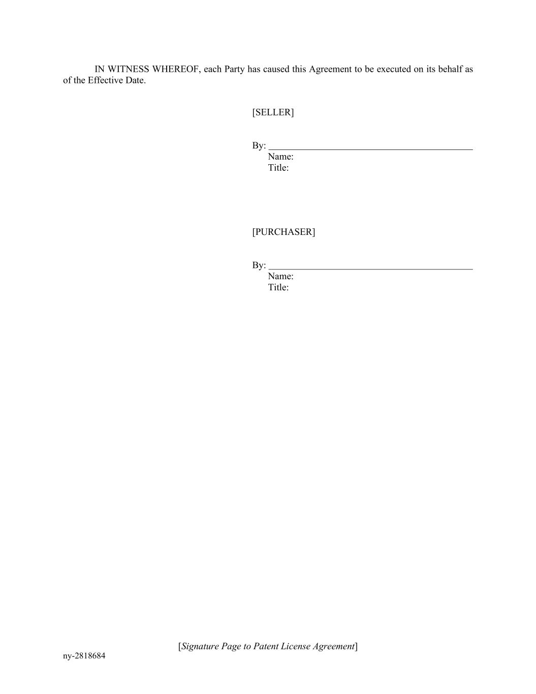 [Signature Page to Patent License Agreement] ny-2818684 IN WITNESS WHEREOF, each Party has caused this Agreement to be executed on its behalf as of the Effective Date. [SELLER] By: Name: Title: [PURCHASER] By: Name: Title: