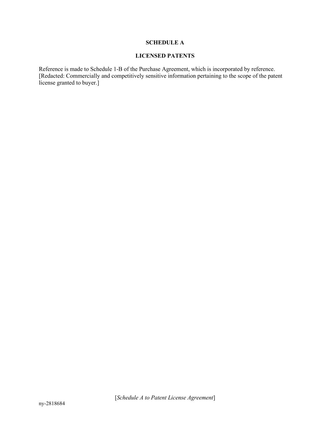 [Schedule A to Patent License Agreement] ny-2818684 SCHEDULE A LICENSED PATENTS Reference is made to Schedule 1-B of the Purchase Agreement, which is incorporated by reference. [Redacted: Commercially and competitively sensitive information pertaining to the scope of the patent license granted to buyer.]