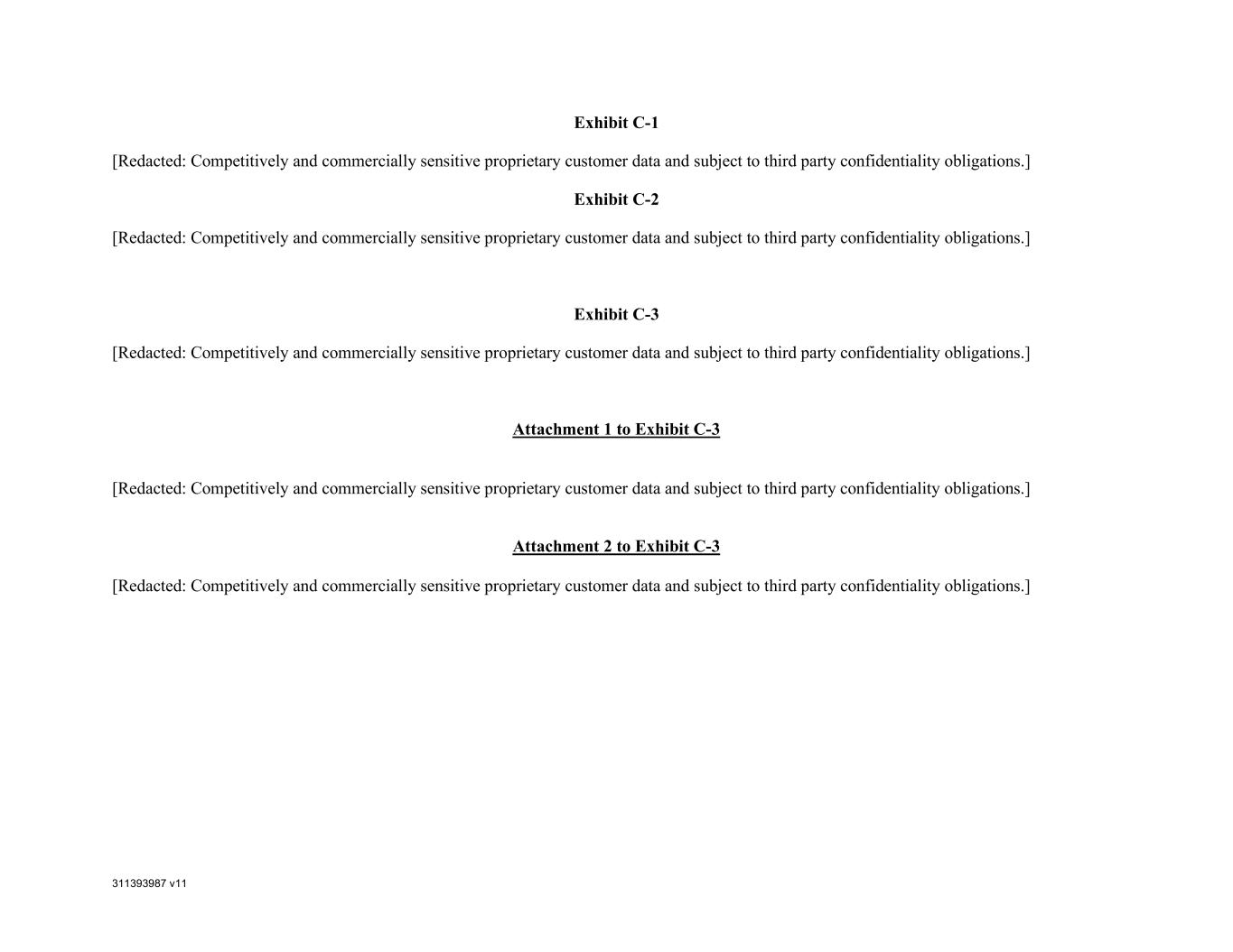 311393987 v11 Exhibit C-1 [Redacted: Competitively and commercially sensitive proprietary customer data and subject to third party confidentiality obligations.] Exhibit C-2 [Redacted: Competitively and commercially sensitive proprietary customer data and subject to third party confidentiality obligations.] Exhibit C-3 [Redacted: Competitively and commercially sensitive proprietary customer data and subject to third party confidentiality obligations.] Attachment 1 to Exhibit C-3 [Redacted: Competitively and commercially sensitive proprietary customer data and subject to third party confidentiality obligations.] Attachment 2 to Exhibit C-3 [Redacted: Competitively and commercially sensitive proprietary customer data and subject to third party confidentiality obligations.]