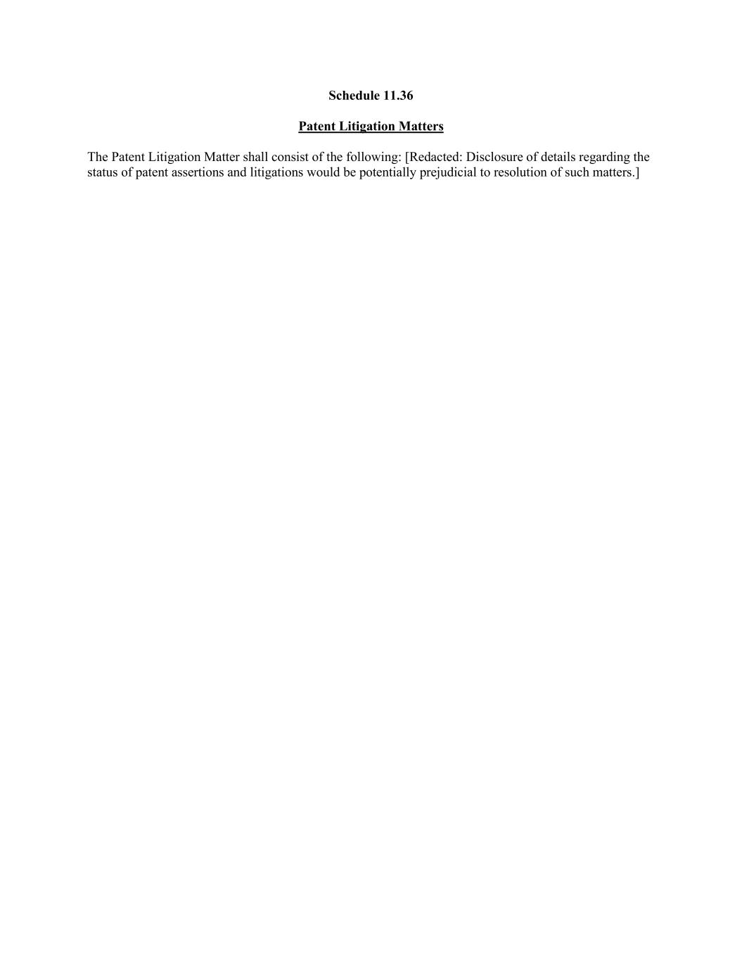 Schedule 11.36 Patent Litigation Matters The Patent Litigation Matter shall consist of the following: [Redacted: Disclosure of details regarding the status of patent assertions and litigations would be potentially prejudicial to resolution of such matters.]