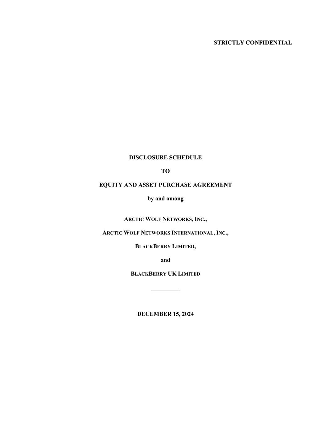 STRICTLY CONFIDENTIAL DISCLOSURE SCHEDULE TO EQUITY AND ASSET PURCHASE AGREEMENT by and among ARCTIC WOLF NETWORKS, INC., ARCTIC WOLF NETWORKS INTERNATIONAL, INC., BLACKBERRY LIMITED, and BLACKBERRY UK LIMITED DECEMBER 15, 2024