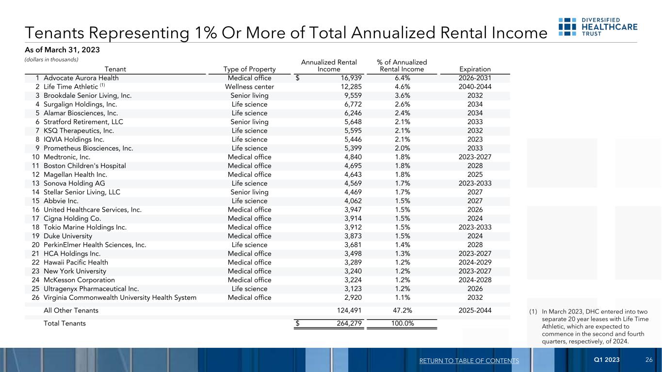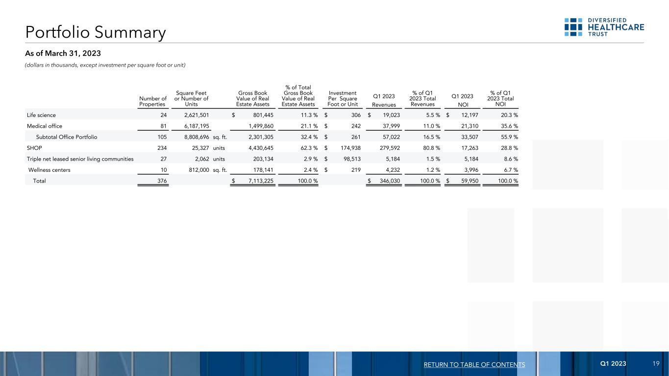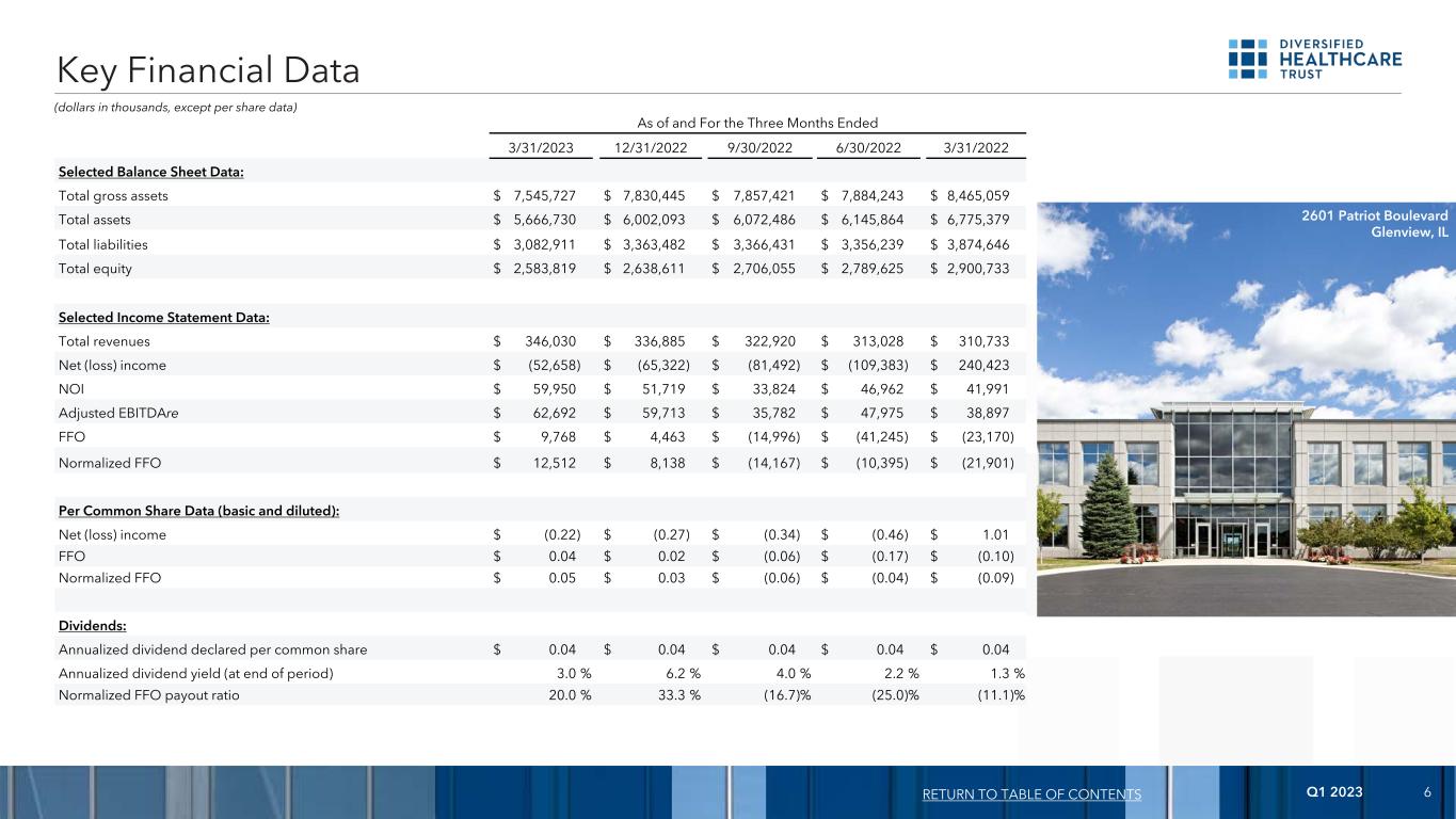 ダイバーシファイド・ヘルスケア・トラスト、2023年第1四半期決算を発表