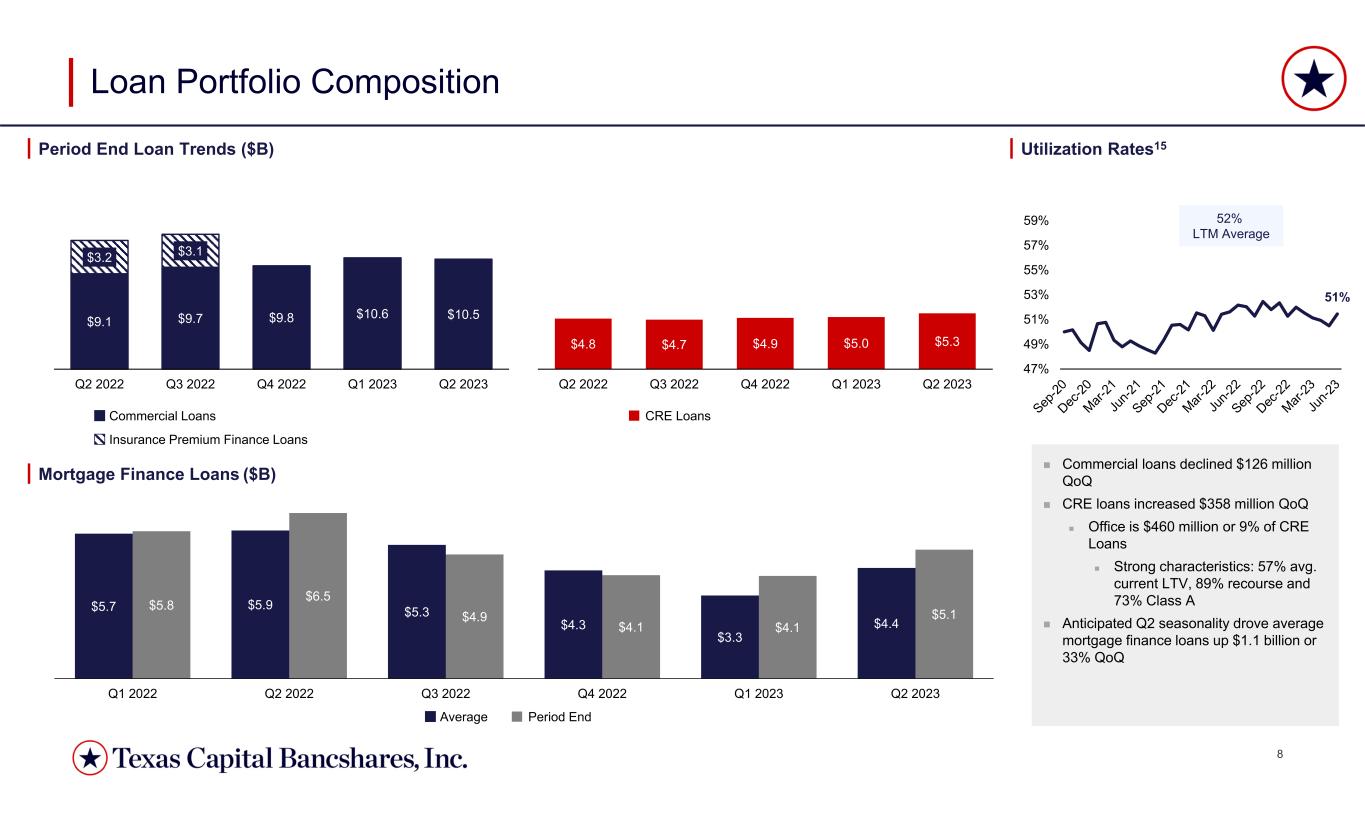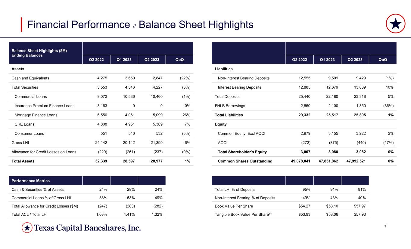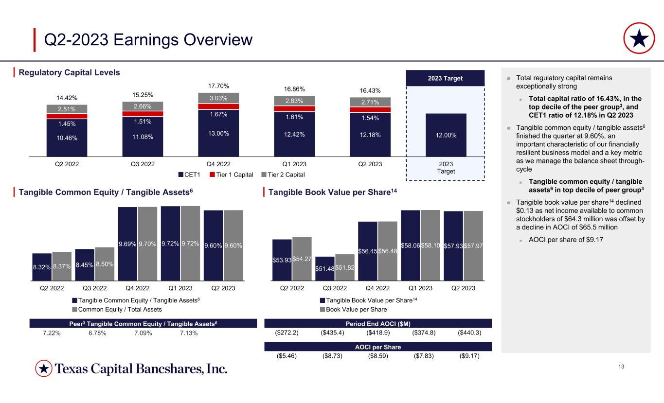 テキサス・キャピタル・バンクの親会社であるテキサス・キャピタル・バンクシェアーズ(NASDAQ: TCBI)は、2023 年第 2 四半期の業績を発表した。