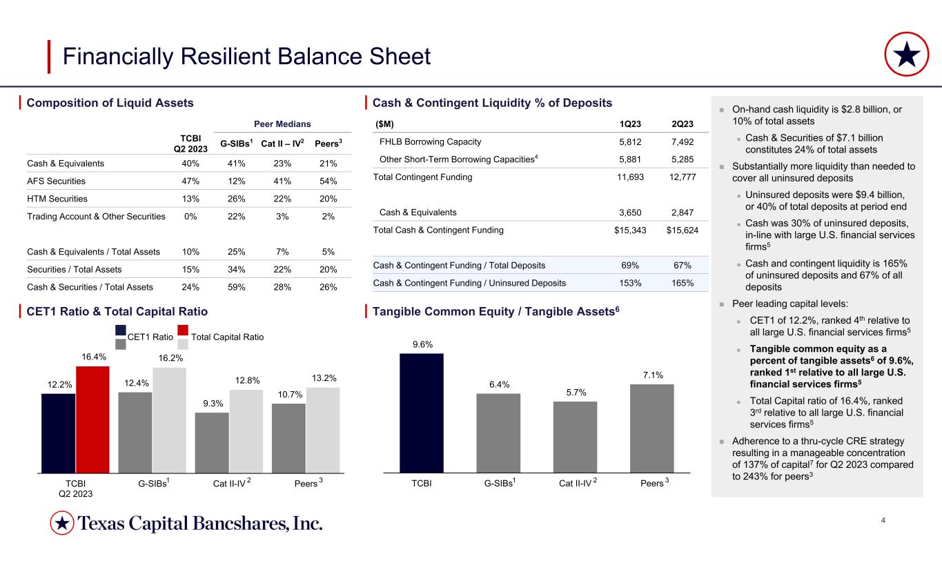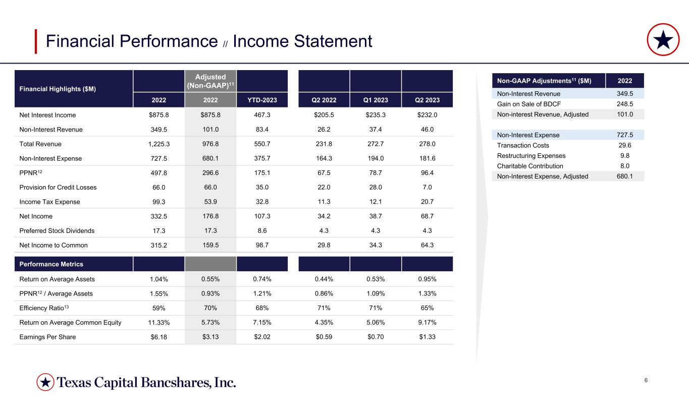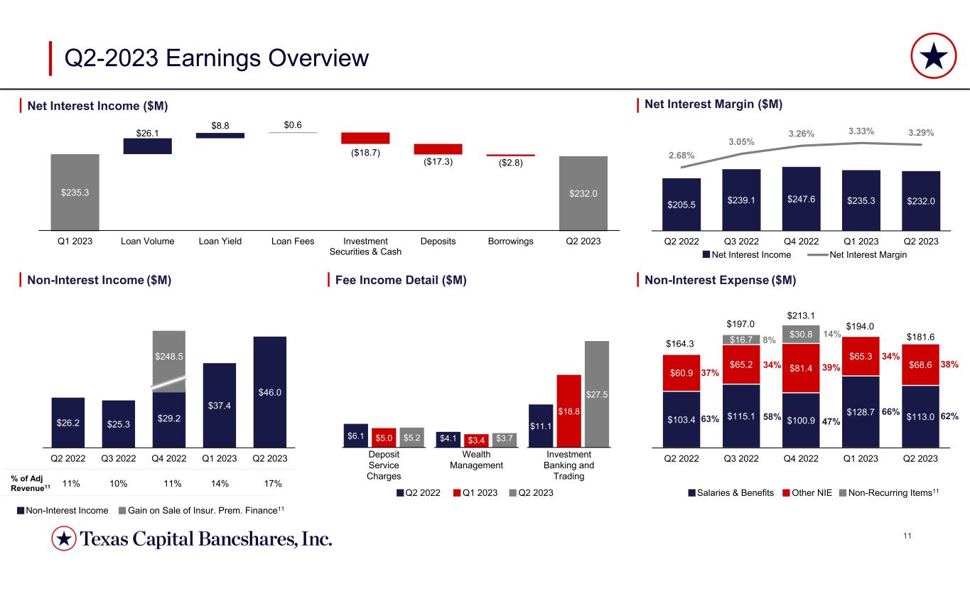 テキサス・キャピタル・バンクの親会社であるテキサス・キャピタル・バンクシェアーズ(NASDAQ: TCBI)は、2023 年第 2 四半期の業績を発表した。