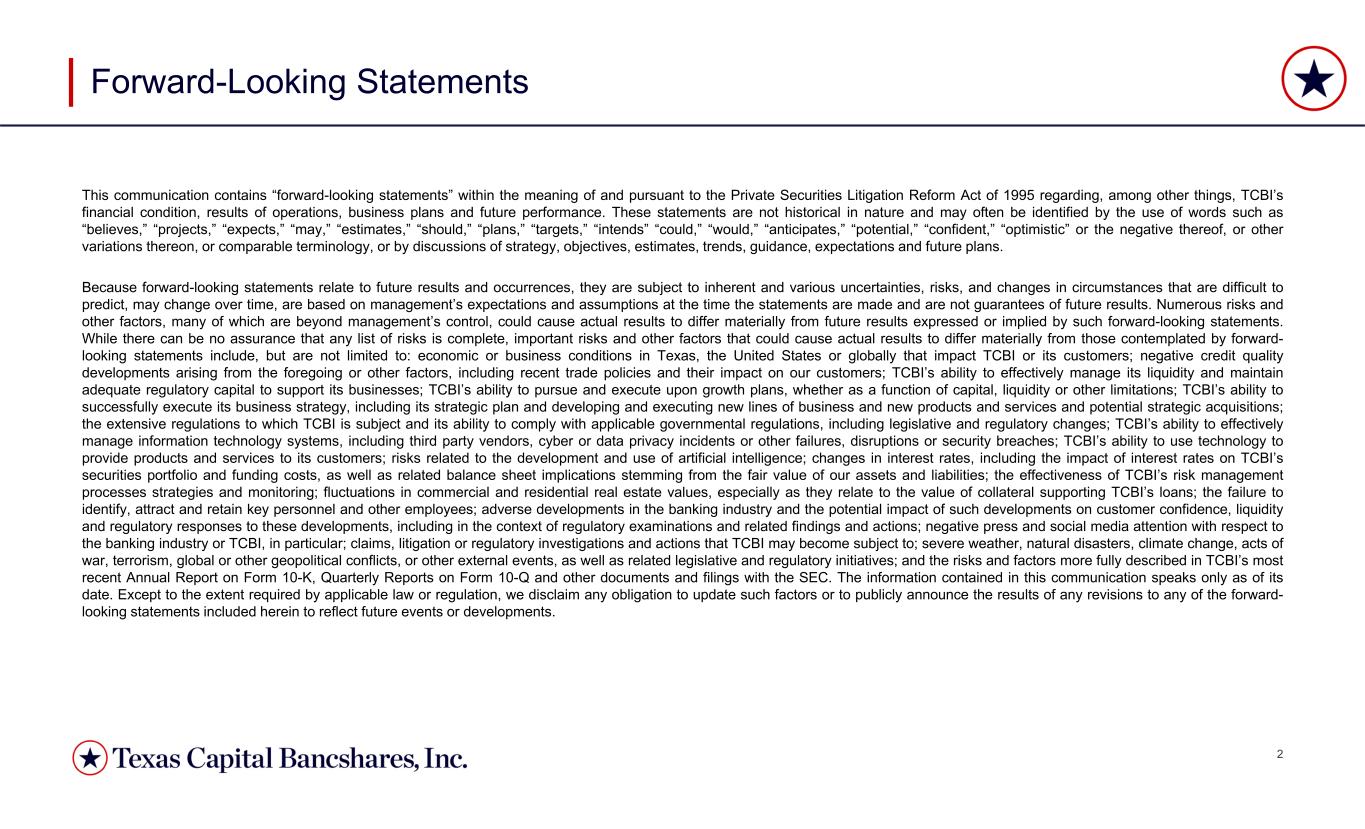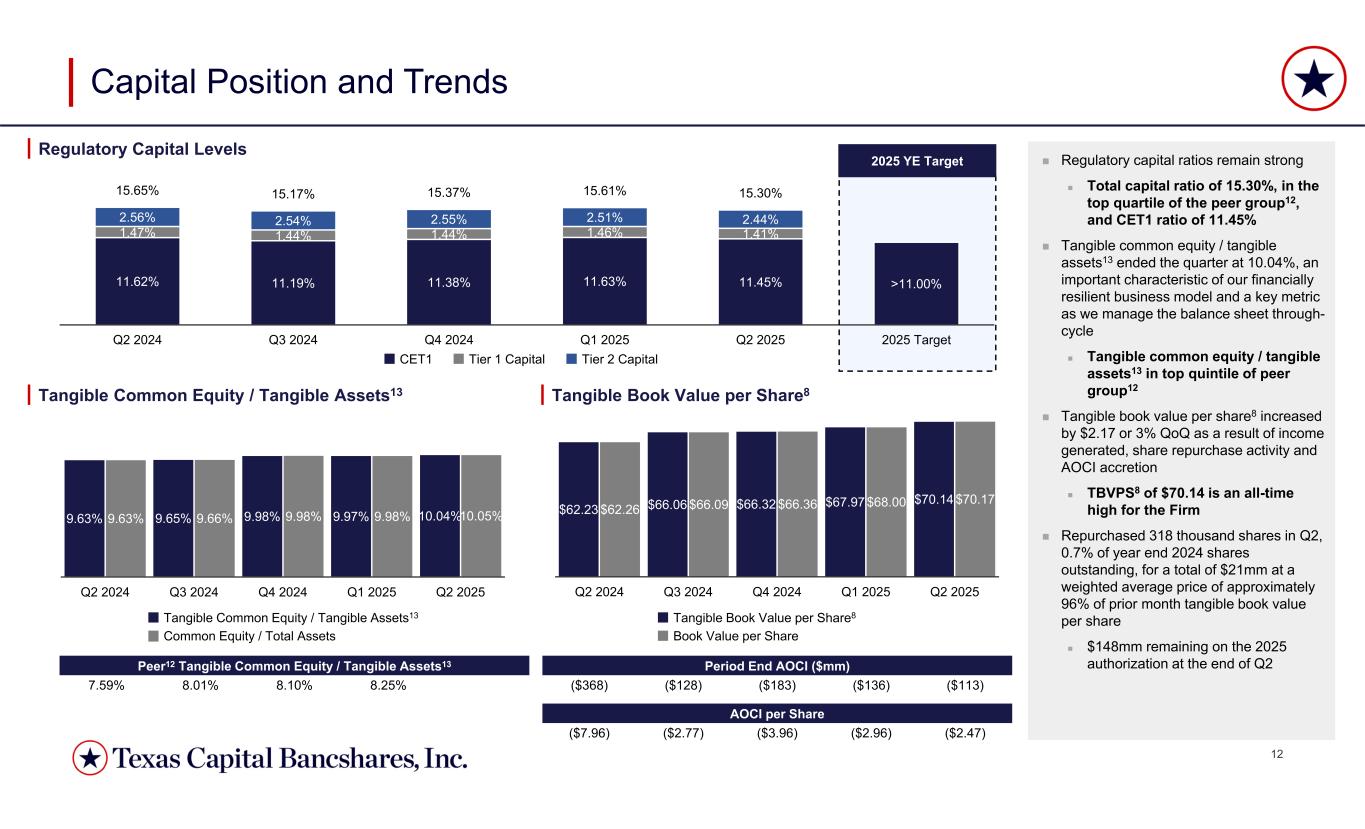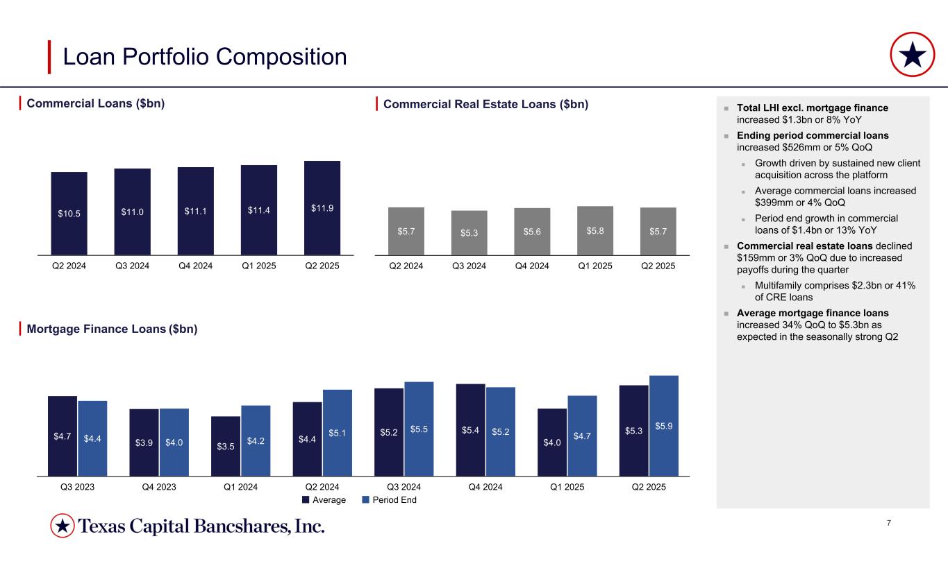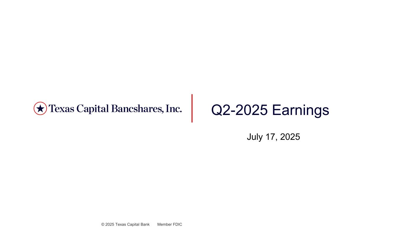 ダラス-2025 年 7 月 17 日-テキサス・キャピタル・バンクの親会社であるテキサス・キャピタル・バン クシェアーズ・インク(NASDAQ: TCBI)は、2025 年第 2 四半期の営業実績を発表した。