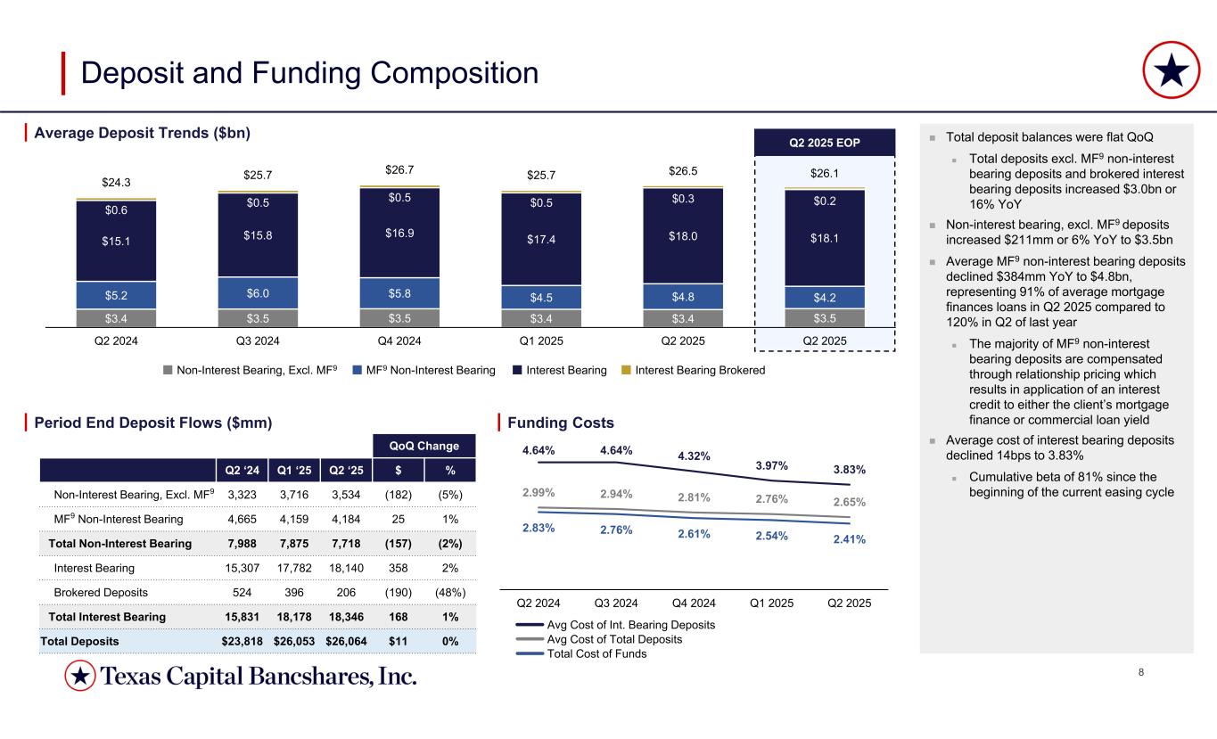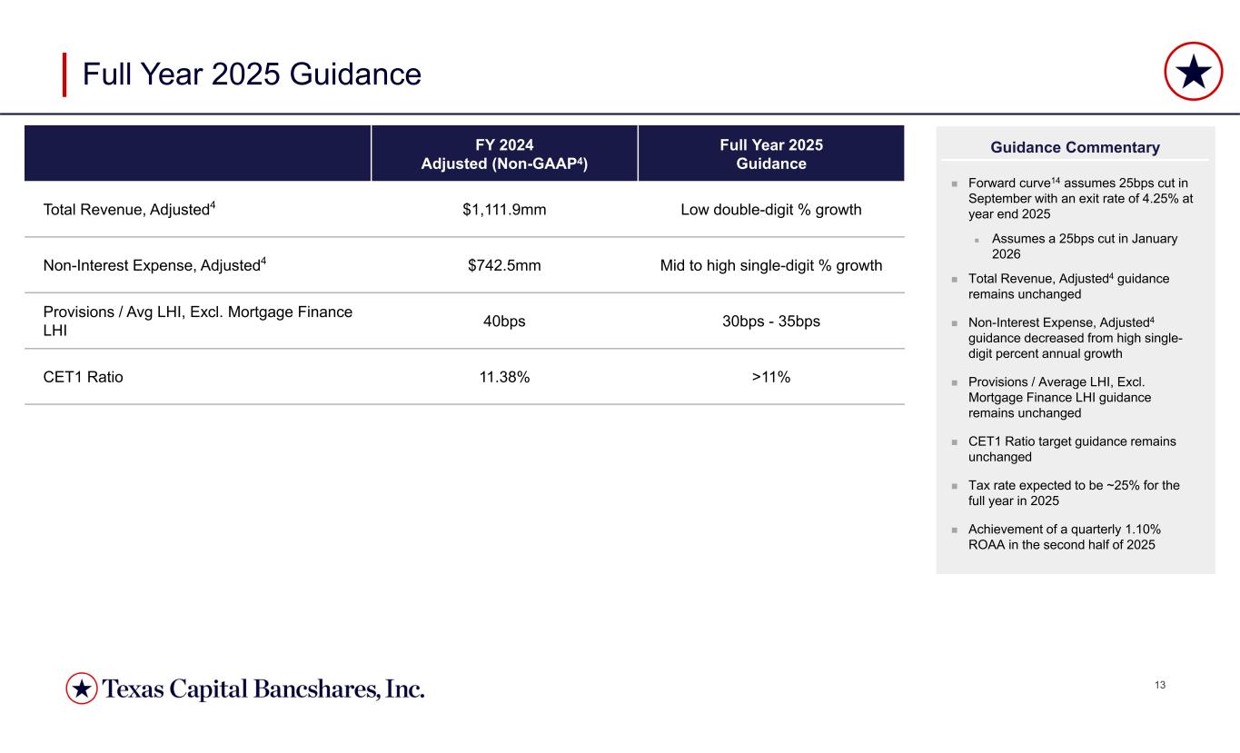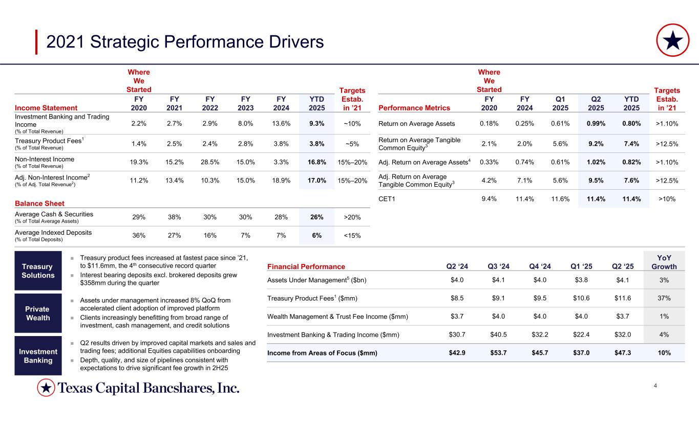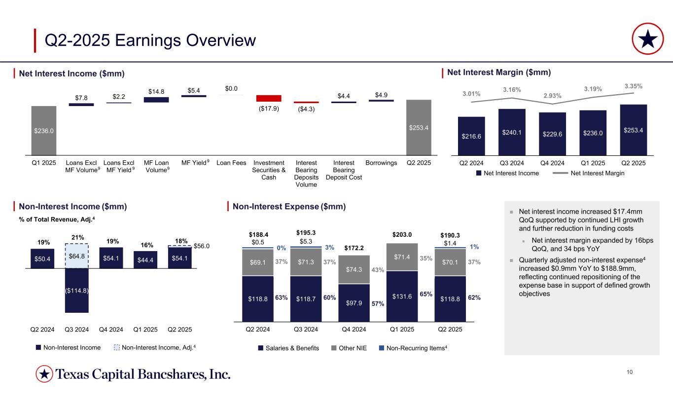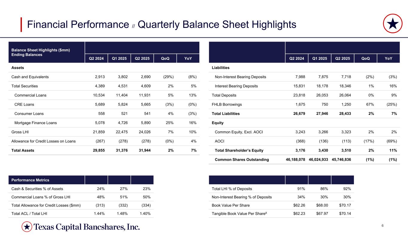 ダラス-2025 年 7 月 17 日-テキサス・キャピタル・バンクの親会社であるテキサス・キャピタル・バン クシェアーズ・インク(NASDAQ: TCBI)は、2025 年第 2 四半期の営業実績を発表した。