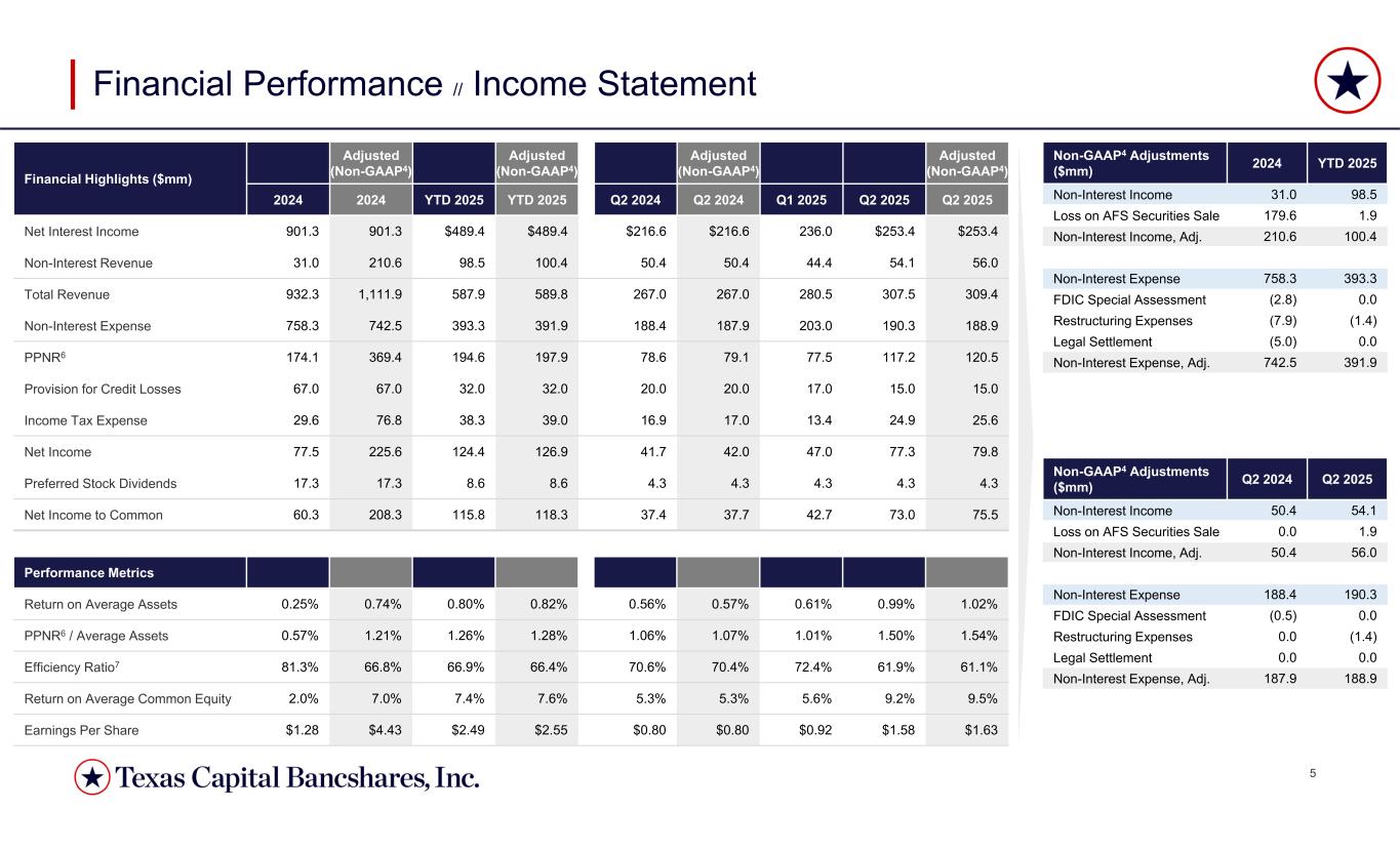 テキサス・キャピタル・バンクシェアーズ・インク2025 年第 2 四半期決算を発表