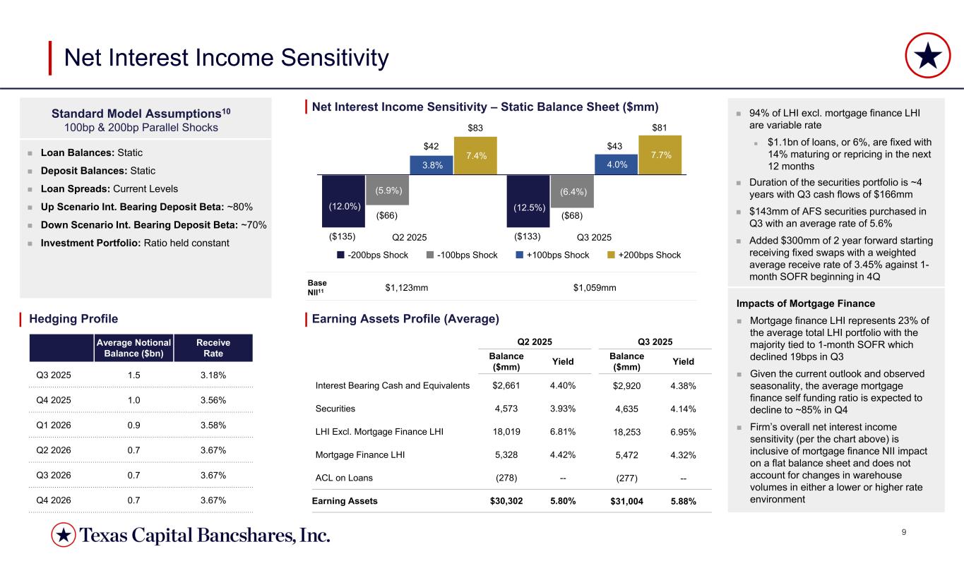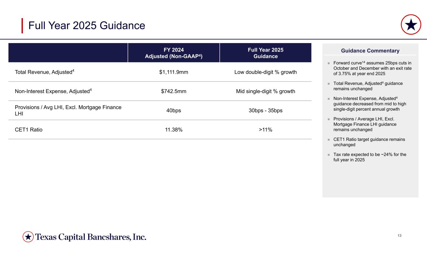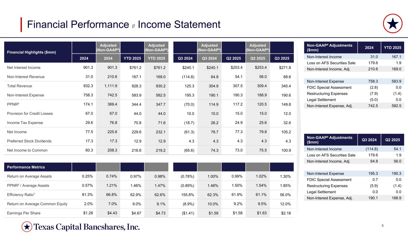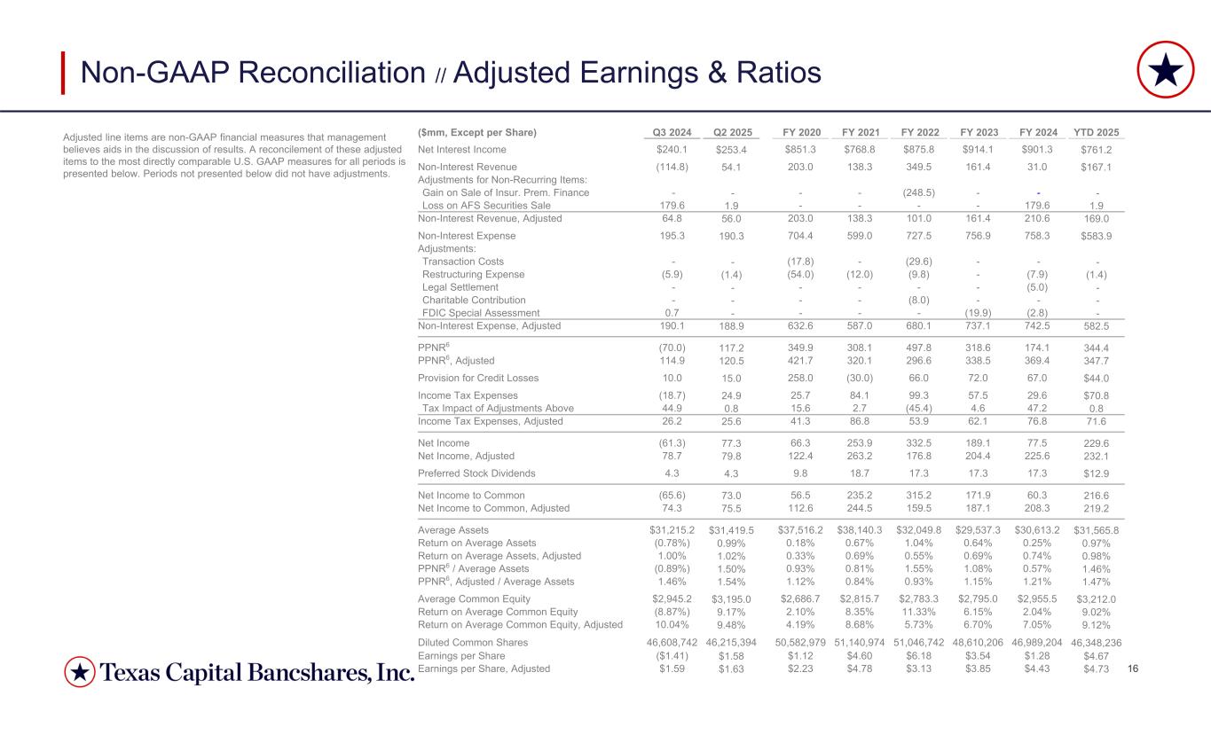 ダラス-2025 年 10 月 22 日-テキサス・キャピタル・バンクの親会社であるテキサス・キャピタル・バン クシェアーズ・インク(NASDAQ: TCBI)は、2025 年第 3 四半期の営業実績を発表した。