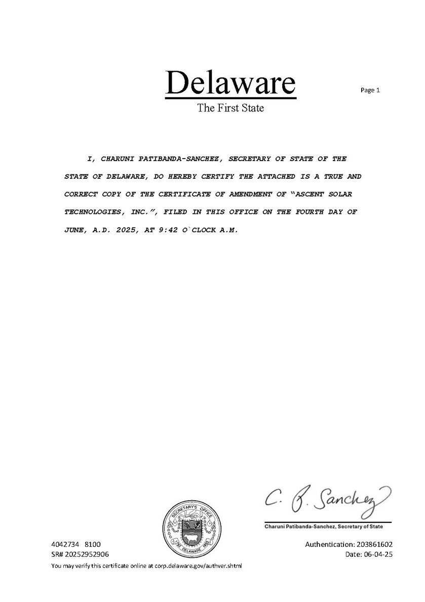 ASCENT SOLAR TECHNOLOGIES, INC.