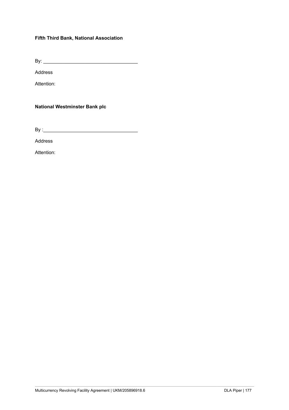 Multicurrency Revolving Facility Agreement | UKM/205896918.6 DLA Piper | 177 Fifth Third Bank, National Association By: ___________________________________ Address Attention: National Westminster Bank plc By :___________________________________ Address Attention: