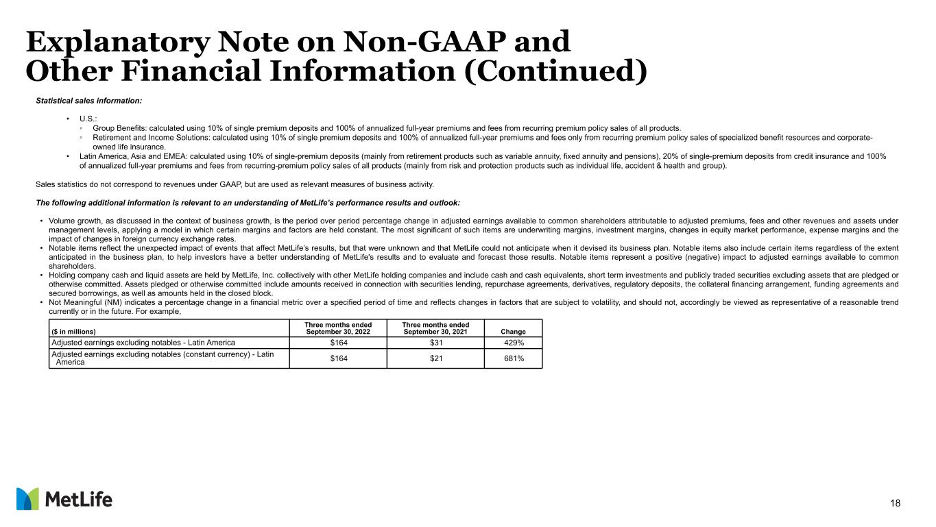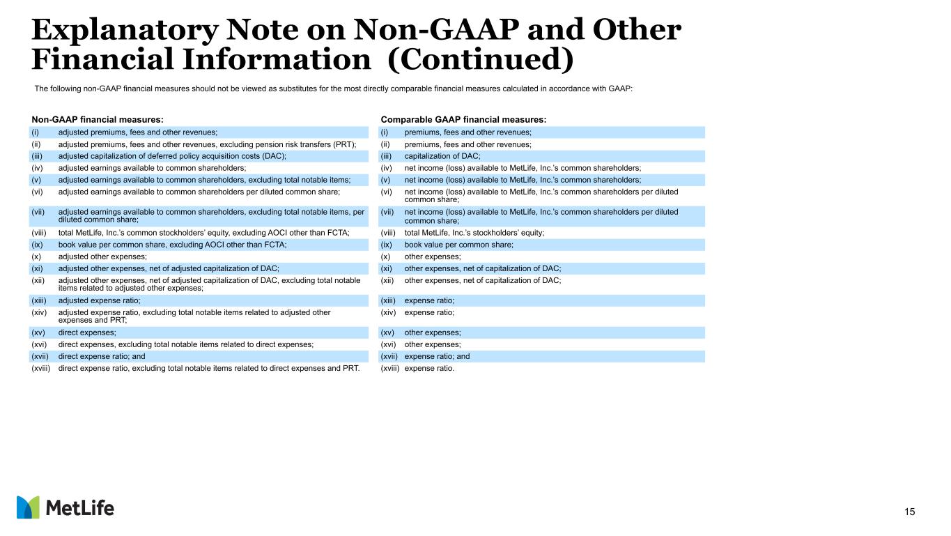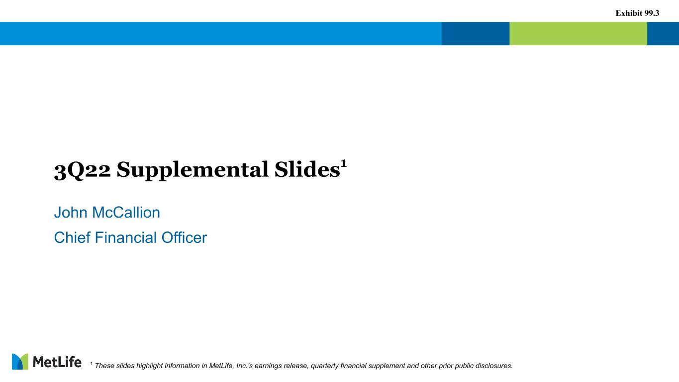 2022年第3四半期の補足スライド(タイトル「3Q22 Supplemental Slides」)は、メットライフ生命の投資家向けウェブサイト(https://investor.metlife.com)およびこの決算発表に関連してメットライフ生命が米国証券取引委員会に提出したフォーム8-Kに掲載されています。