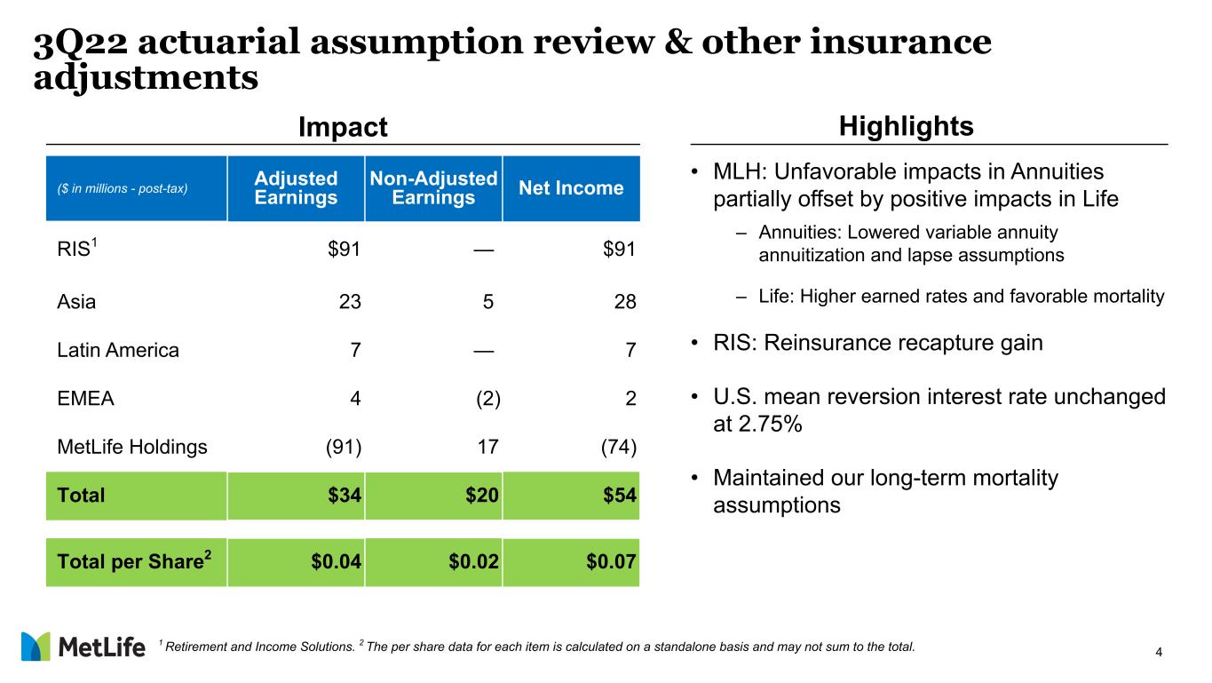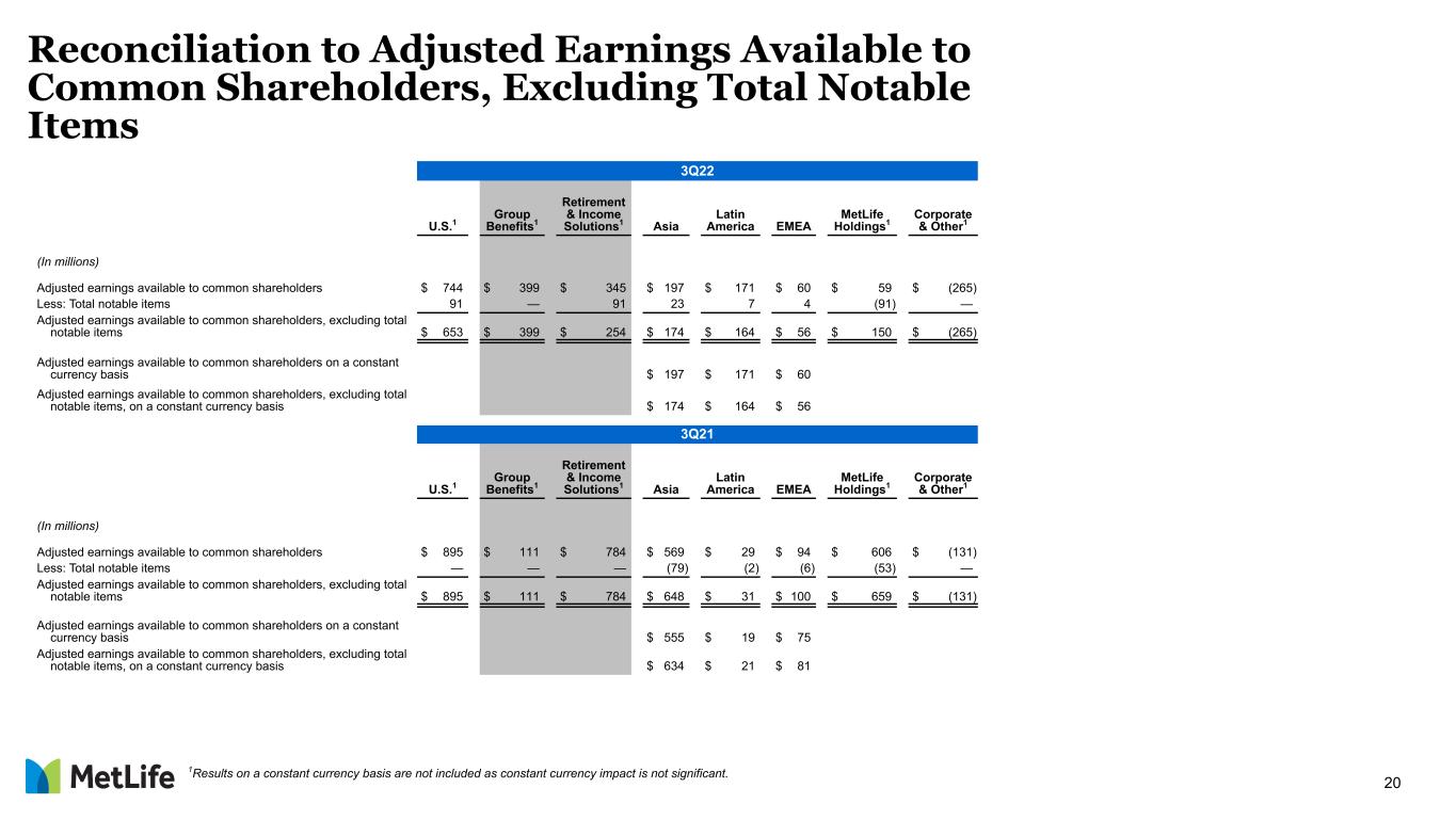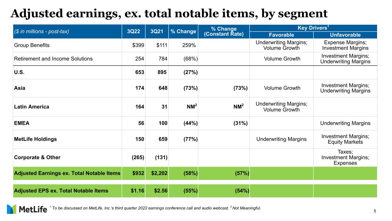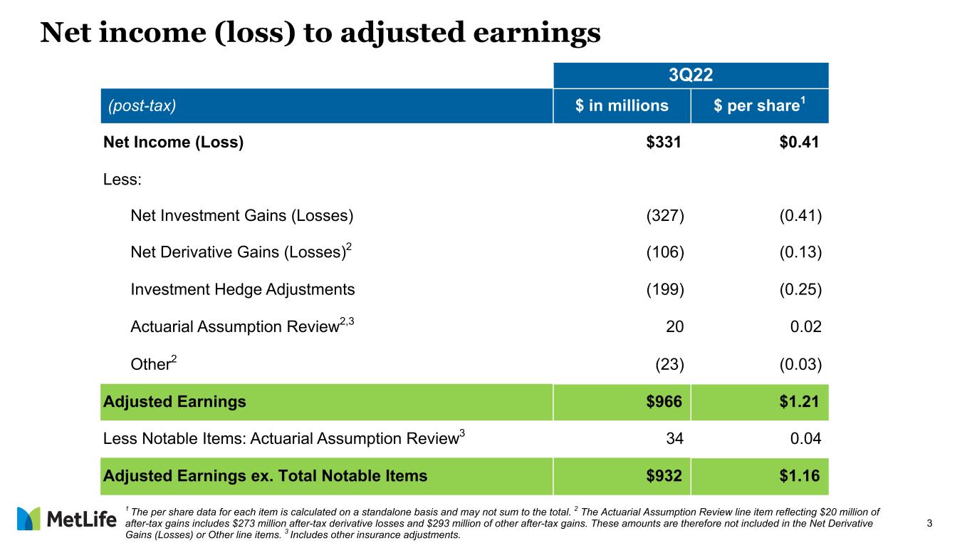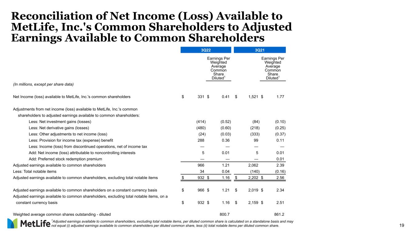 ニューヨーク、2022 年 11 月 2 日 - メットライフ・インク(NYSE: MET)は本日、2022 年第 3 四半期の業績を発表しました。