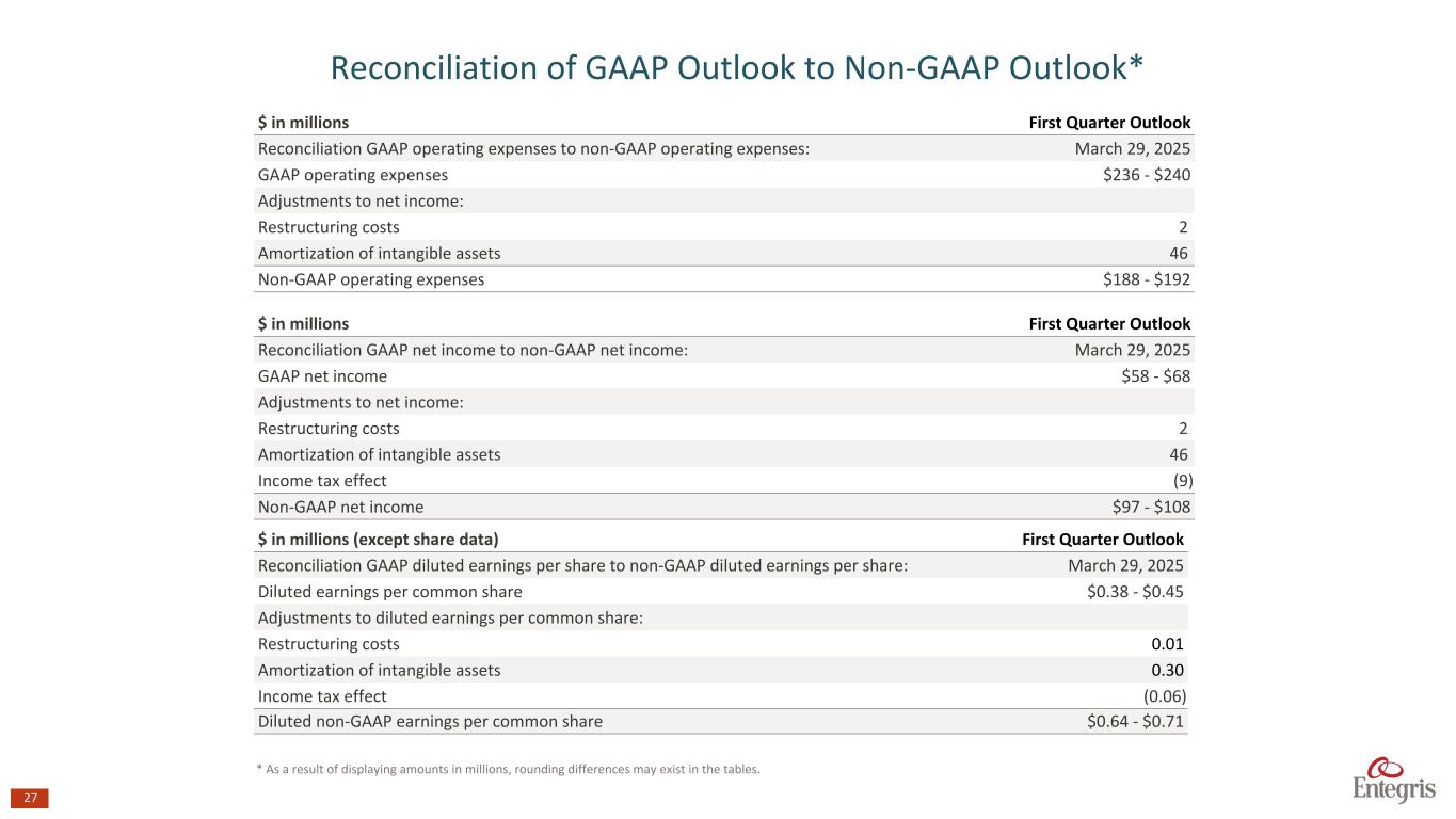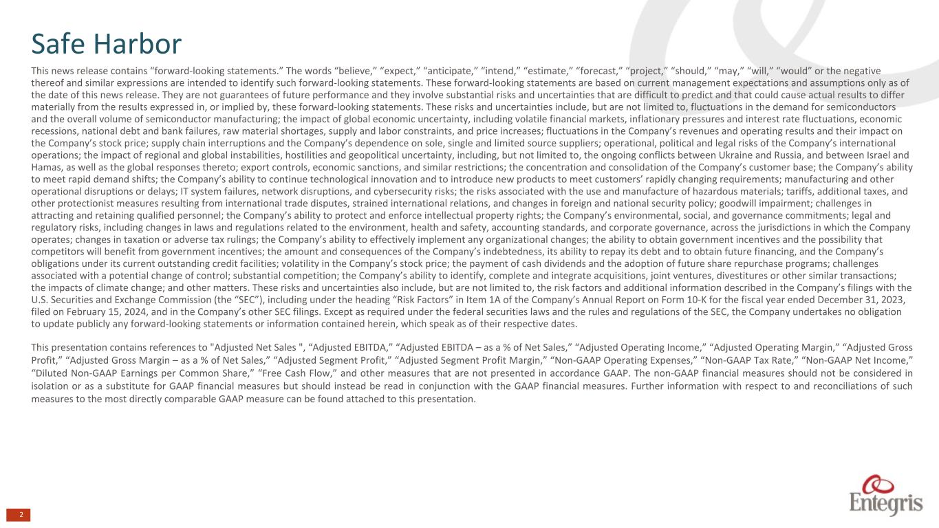 第4四半期の業績に関する経営陣のスライド・プレゼンテーションは、www.entegris.com の投資家向け情報セクションに掲載されます。