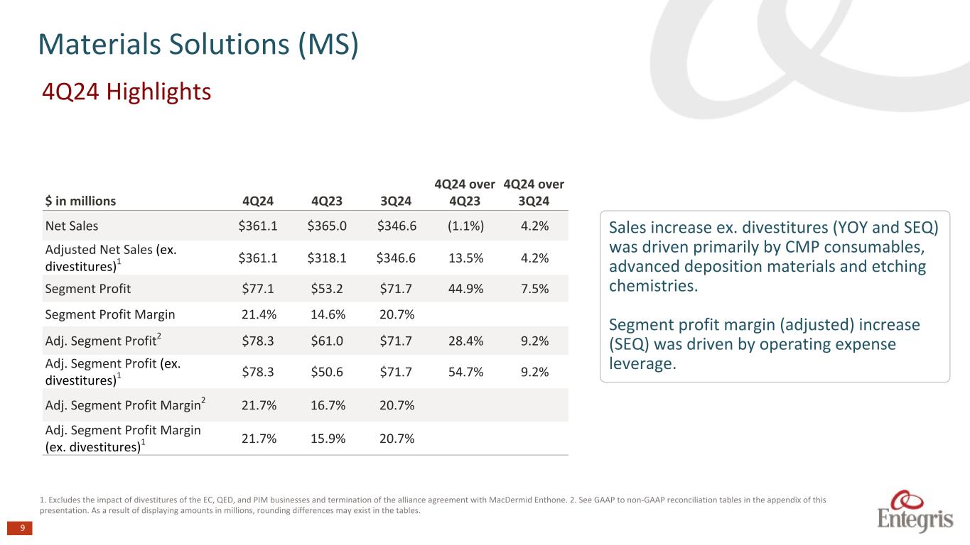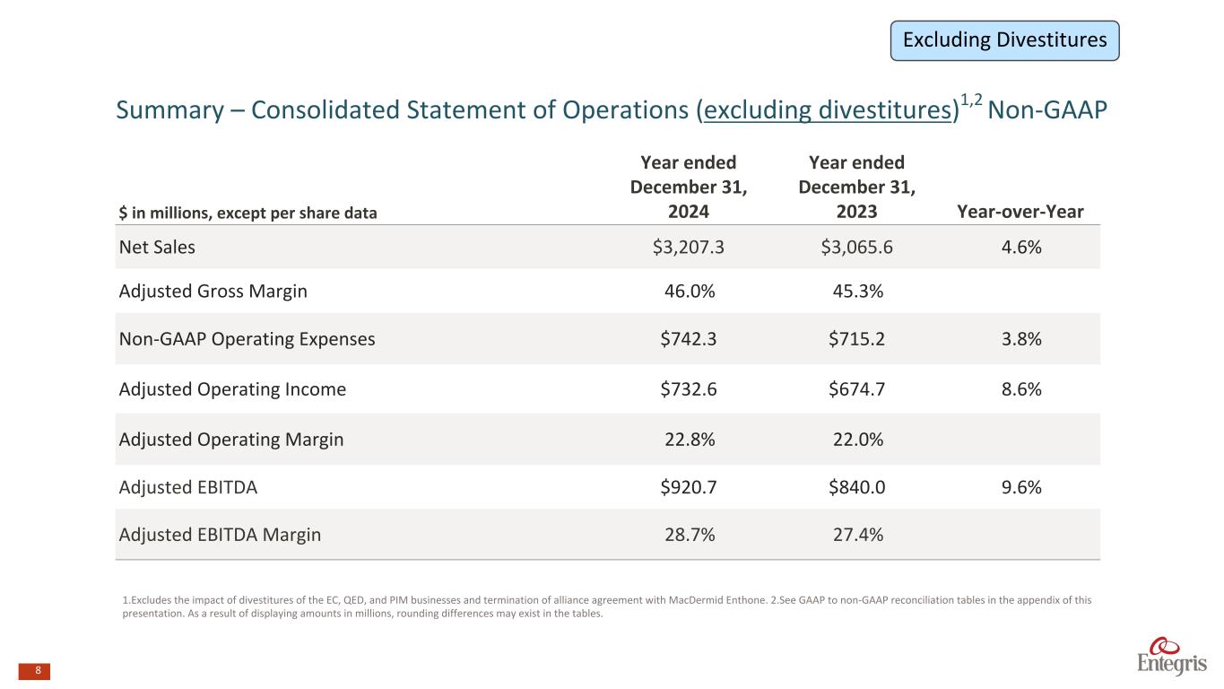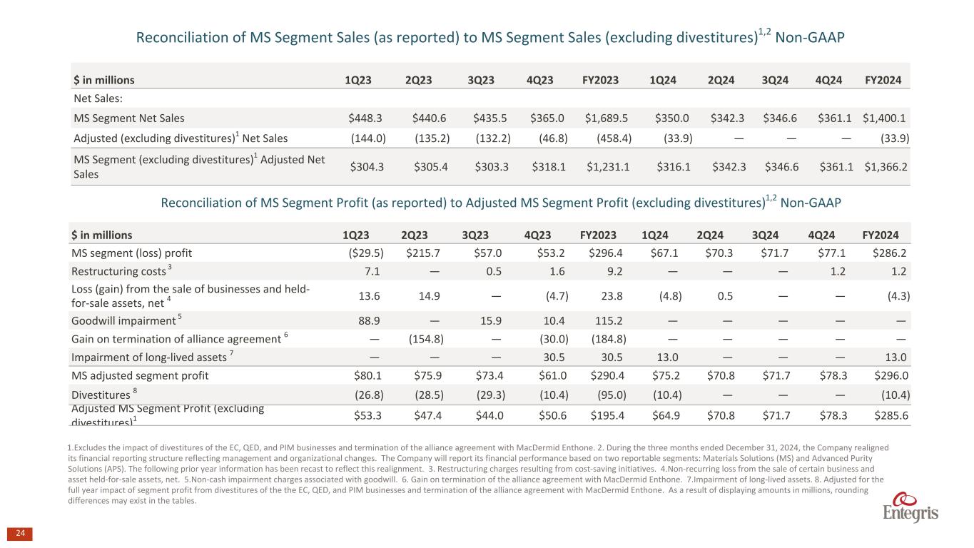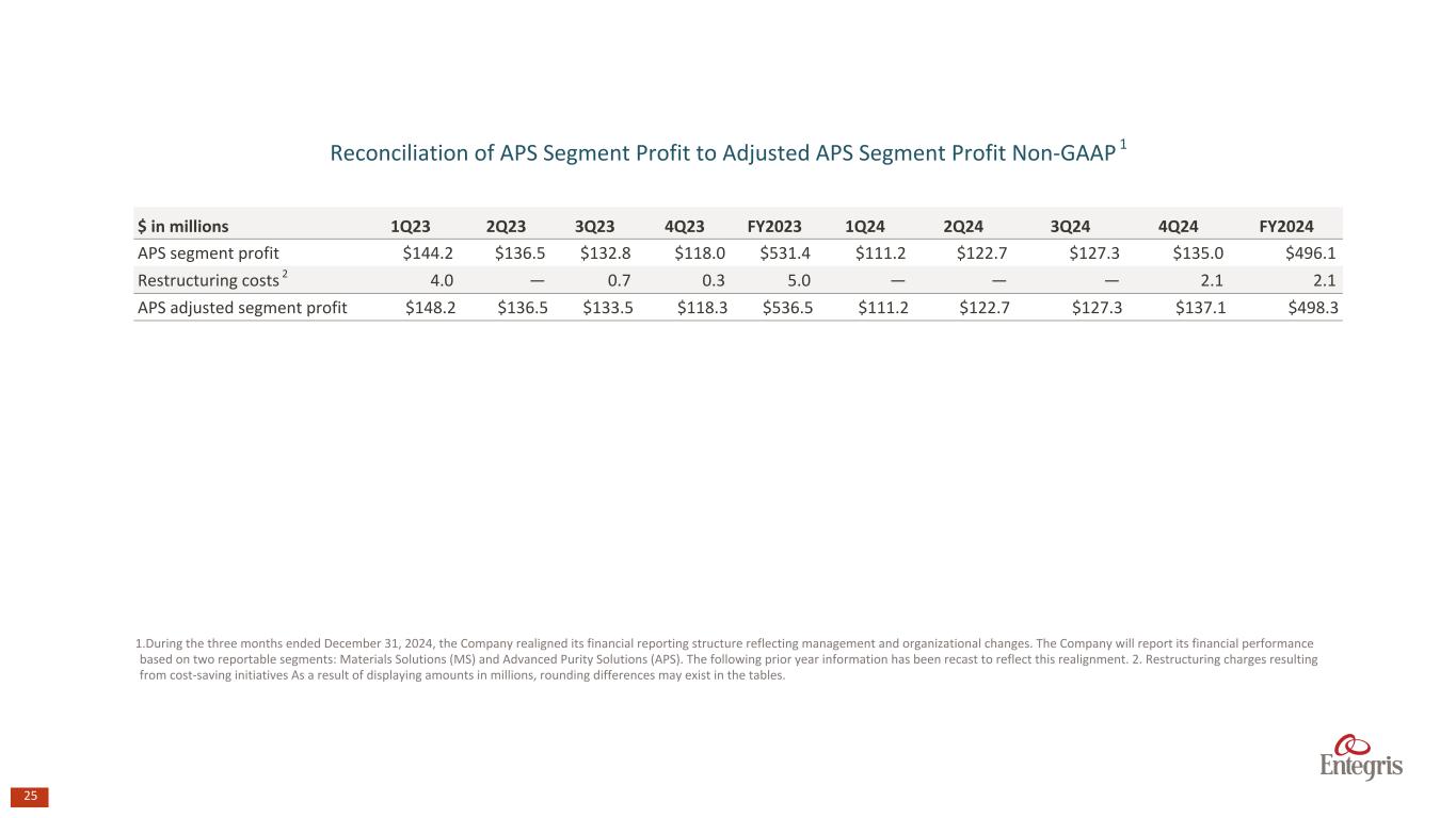マサチューセッツ州ビレリカ、2025年2月6日 - エンテグリス・インク(NASDAQ: ENTG)は本日、2024年12月31日を期末とする第4四半期の決算を発表した。