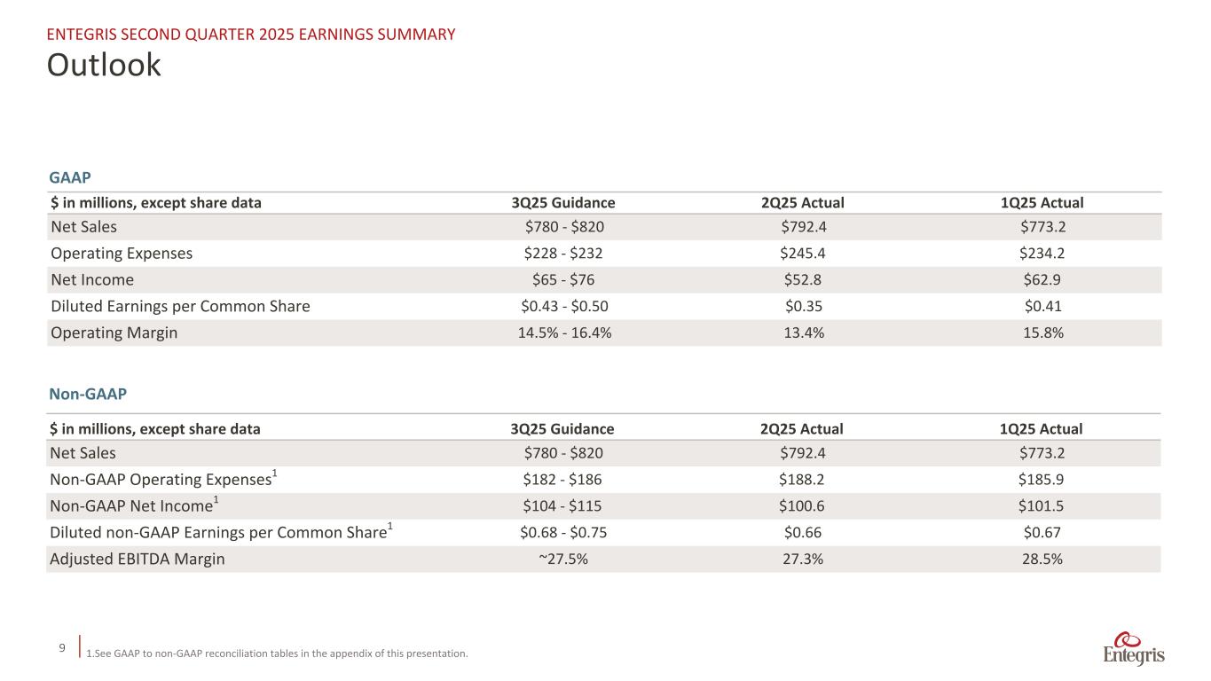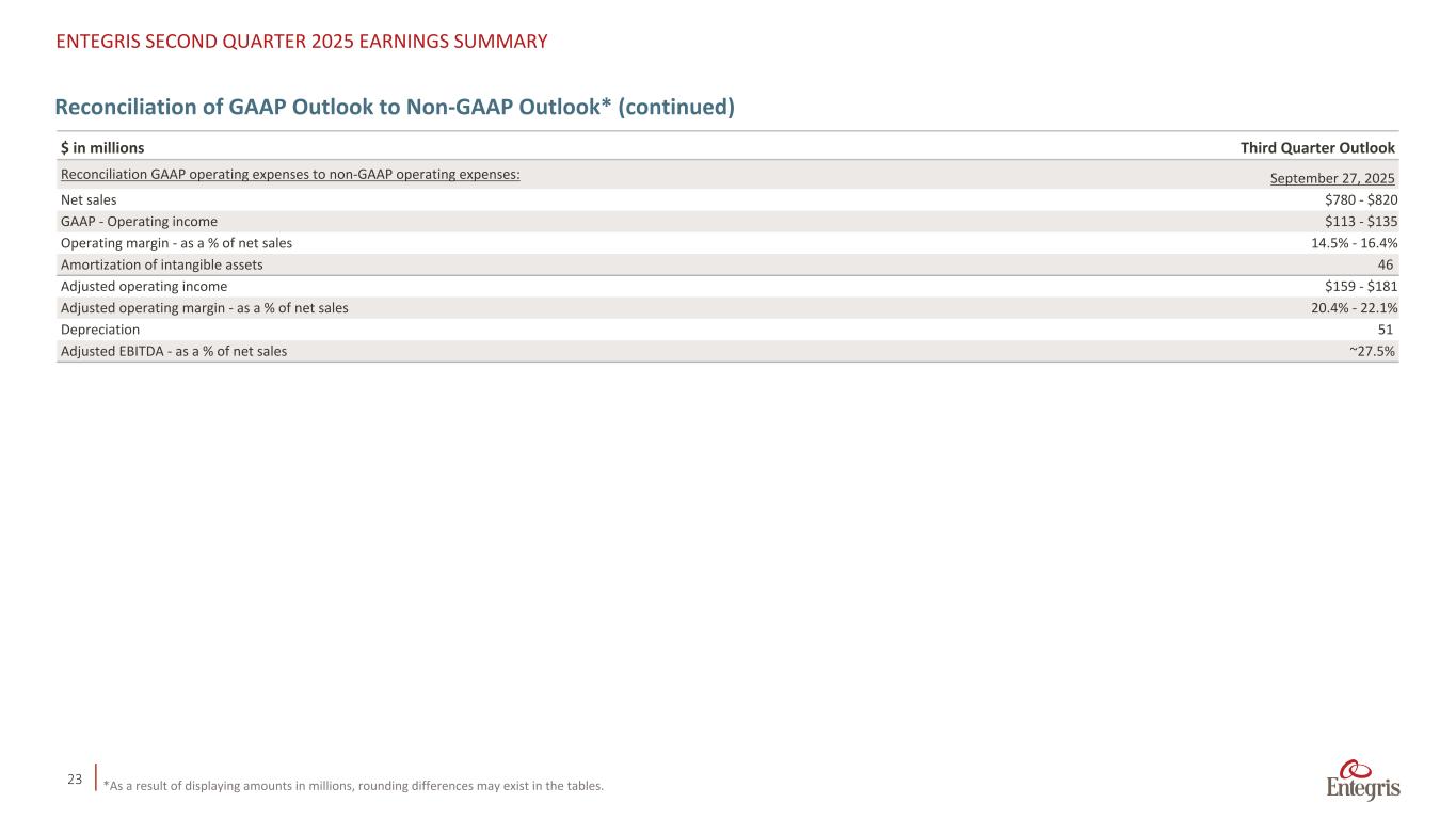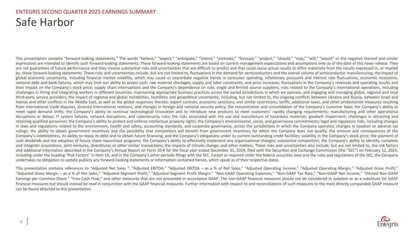 第2四半期の業績に関する経営陣のプレゼンテーション・スライドは、www.entegris.com の投資家情報セクションに掲載されます。