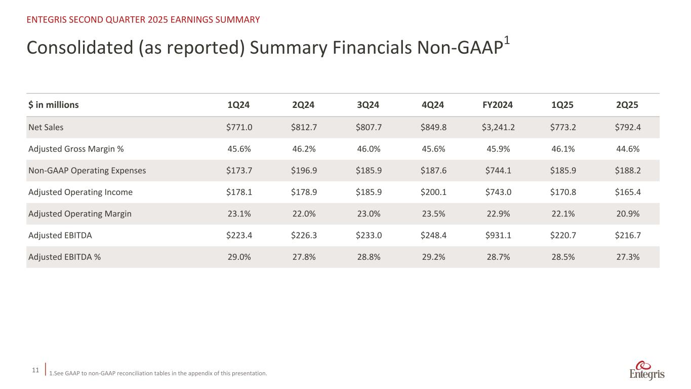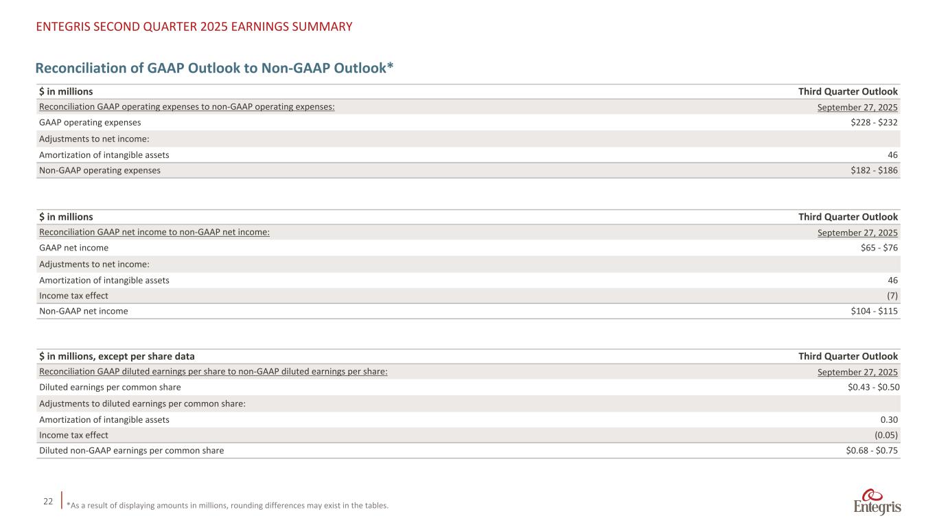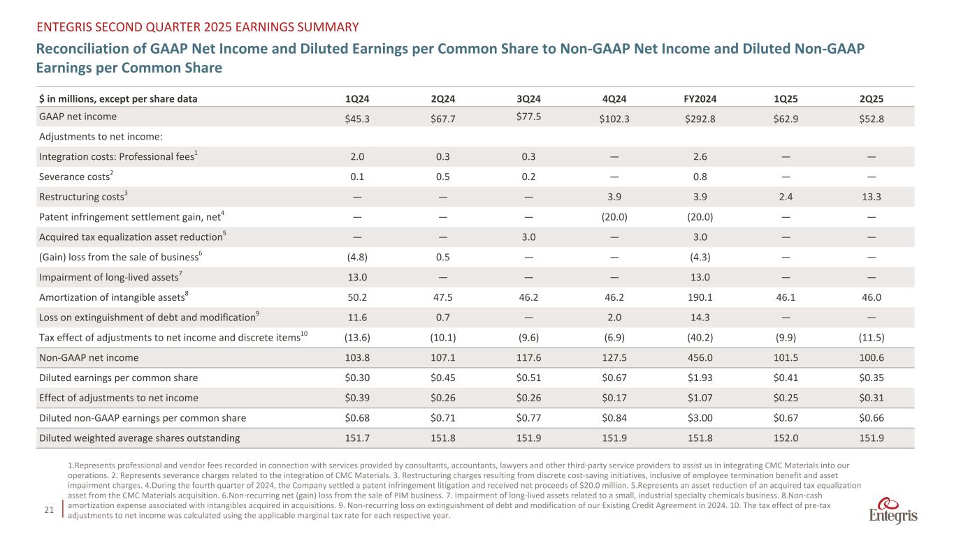 第2四半期の業績に関する経営陣のプレゼンテーション・スライドは、www.entegris.com の投資家情報セクションに掲載されます。