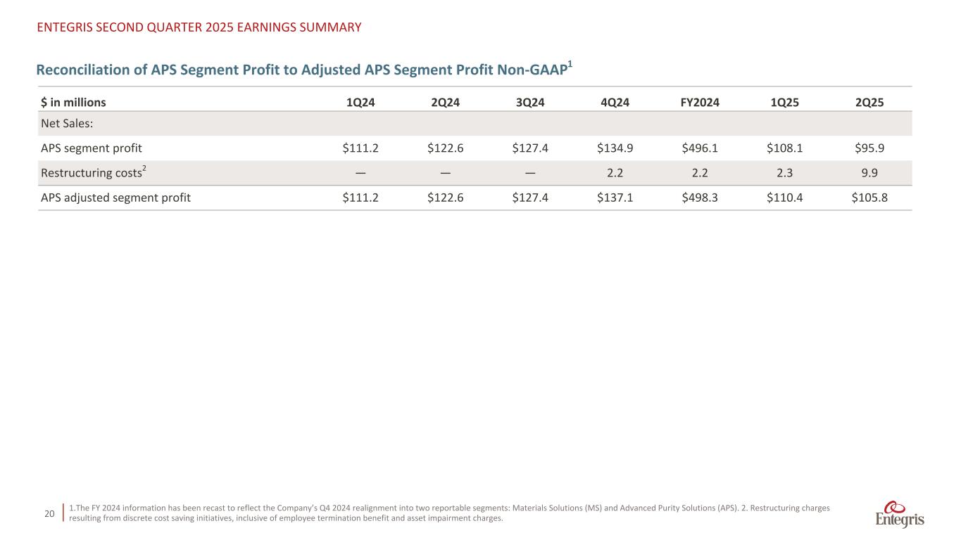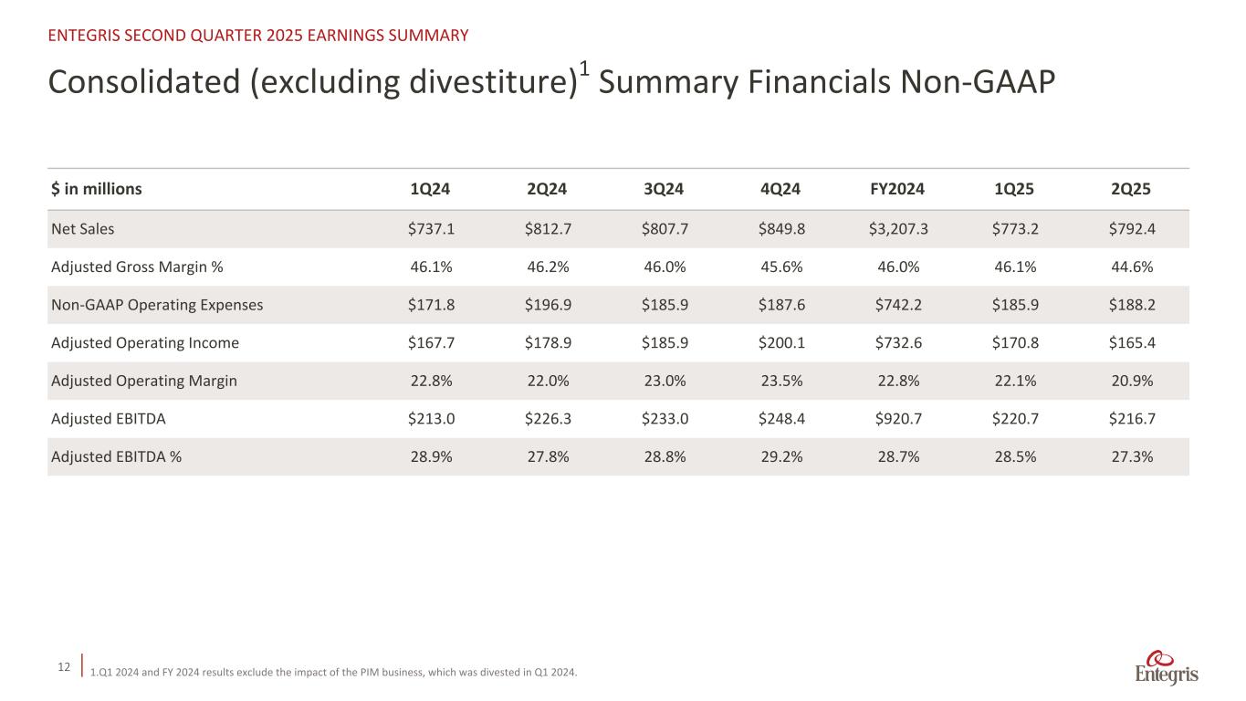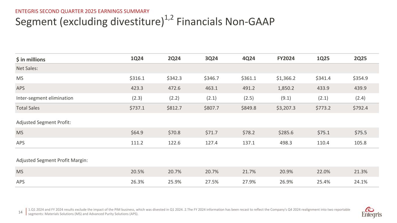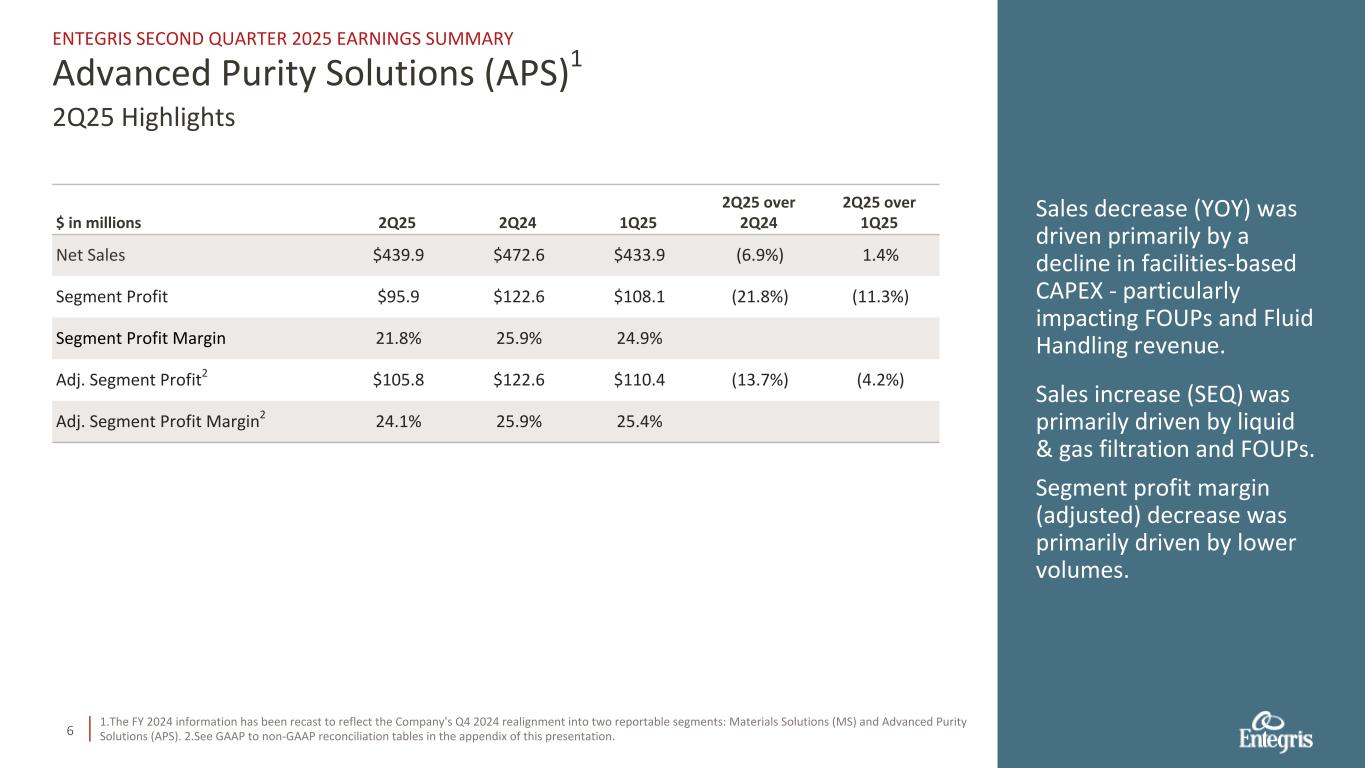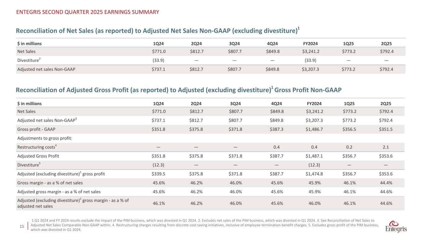 マサチューセッツ州ビレリカ、2025年7月30日 - エンテグリス・インク(NASDAQ: ENTG)は本日、2025年6月28日締めの第2四半期決算を発表した。