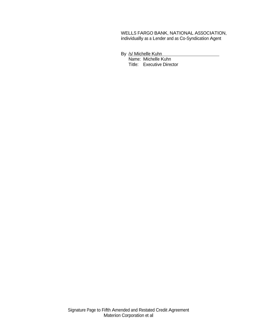 Signature Page to Fifth Amended and Restated Credit Agreement Materion Corporation et al WELLS FARGO BANK, NATIONAL ASSOCIATION, individually as a Lender and as Co-Syndication Agent By /s/ Michelle Kuhn Name: Michelle Kuhn Title: Executive Director