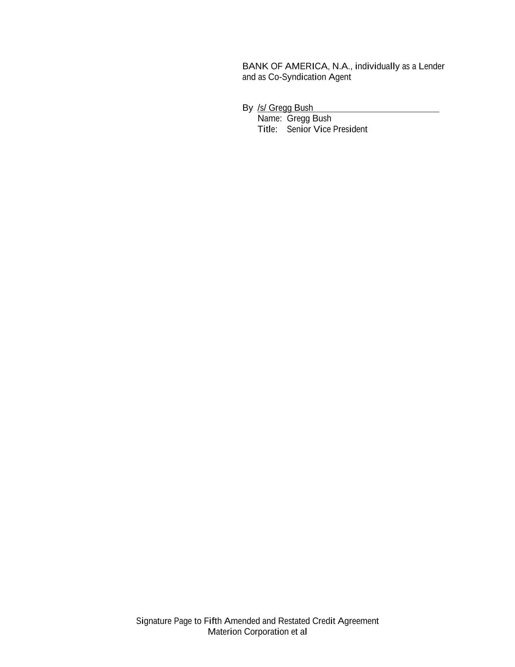 Signature Page to Fifth Amended and Restated Credit Agreement Materion Corporation et al BANK OF AMERICA, N.A., individually as a Lender and as Co-Syndication Agent By /s/ Gregg Bush Name: Gregg Bush Title: Senior Vice President