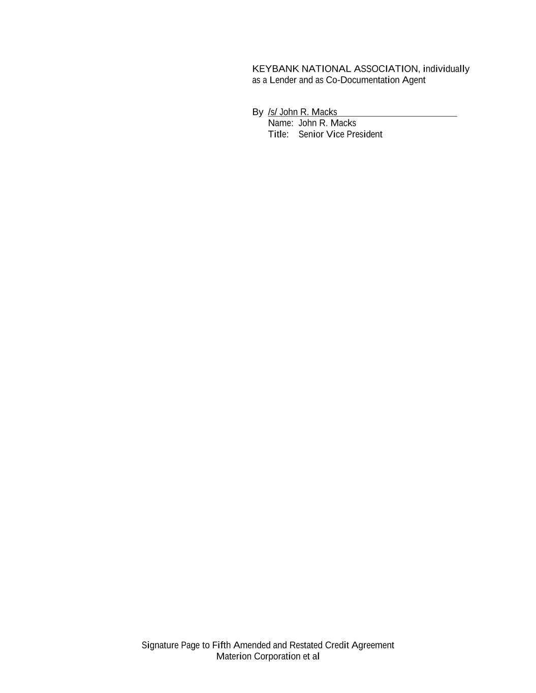 Signature Page to Fifth Amended and Restated Credit Agreement Materion Corporation et al KEYBANK NATIONAL ASSOCIATION, individually as a Lender and as Co-Documentation Agent By /s/ John R. Macks Name: John R. Macks Title: Senior Vice President
