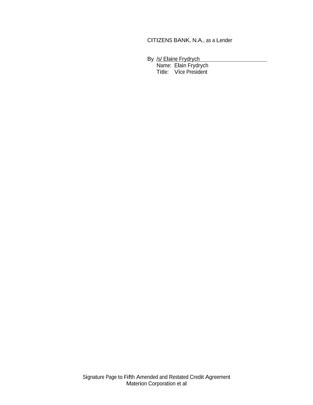 Signature Page to Fifth Amended and Restated Credit Agreement Materion Corporation et al CITIZENS BANK, N.A., as a Lender By /s/ Elaine Frydrych Name: Elain Frydrych Title: Vice President