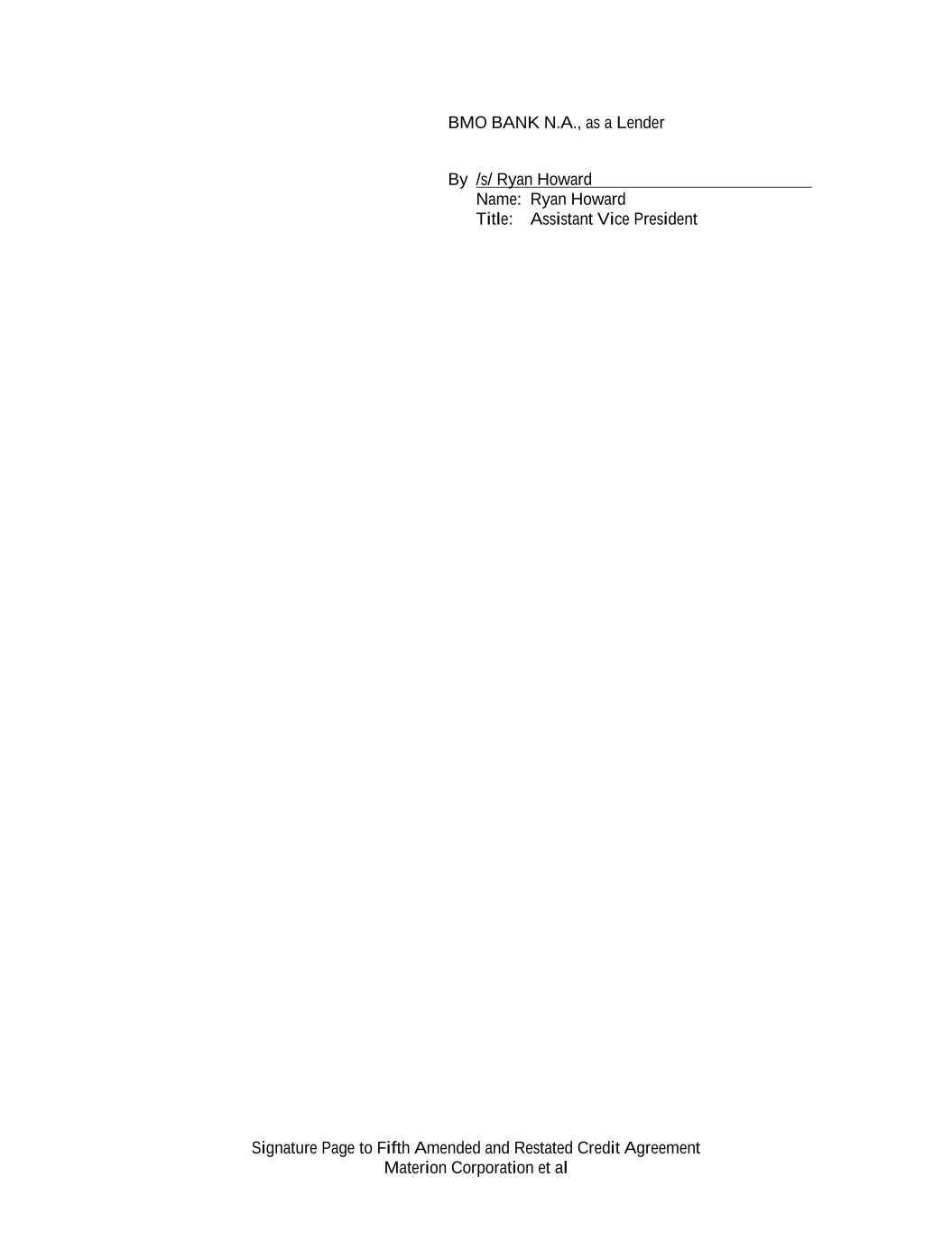Signature Page to Fifth Amended and Restated Credit Agreement Materion Corporation et al BMO BANK N.A., as a Lender By /s/ Ryan Howard Name: Ryan Howard Title: Assistant Vice President