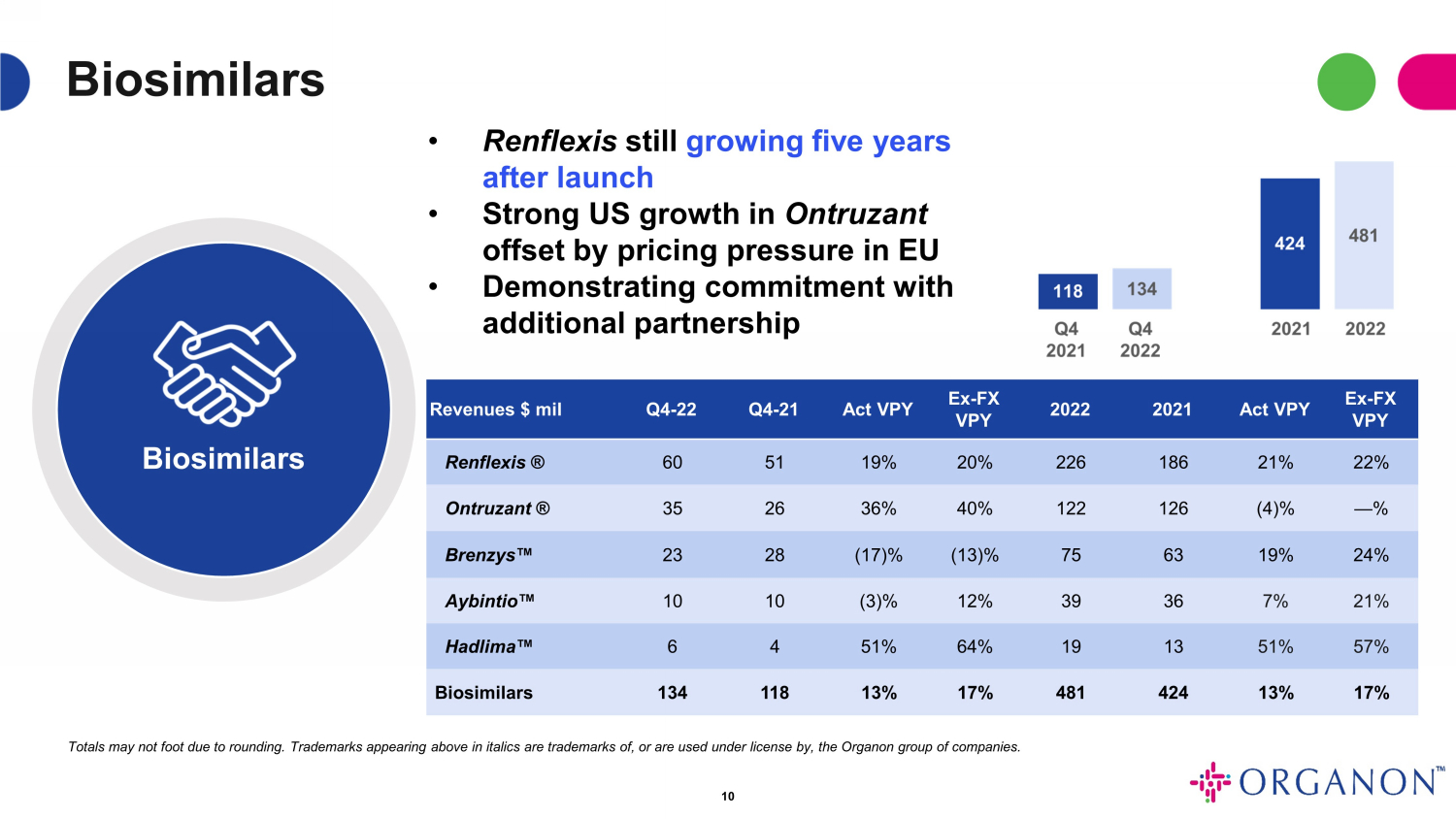 | Biosimilars | 481 | 424 | 13 | % | 17 | % | ||||||||||