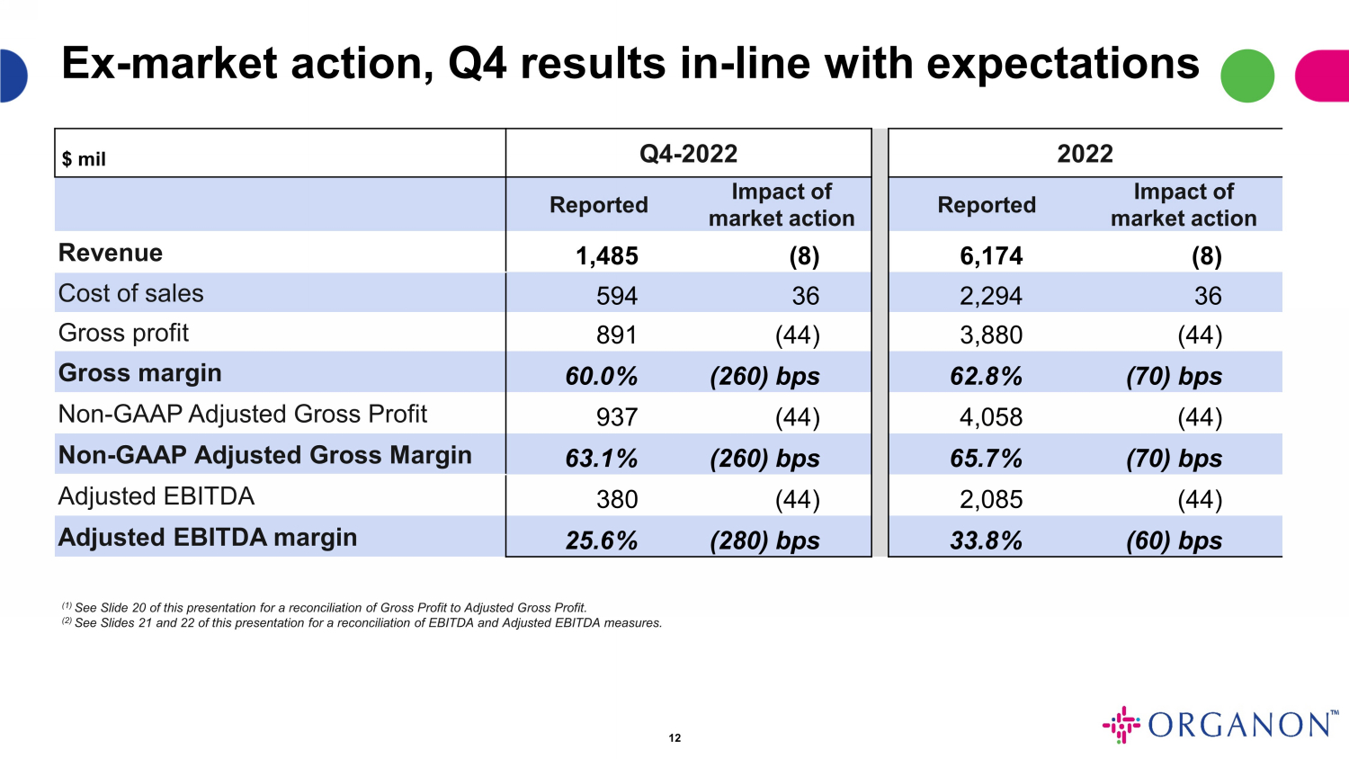2023 年 2 月 16 日、オルガノン社(以下「当社」)は、2022 年 12 月 31 日に終了した四半期および通年の業績に関するプレスリリース(以下「決算リリース」)を発表しました。イヤーニング・リリースは本報告書の別紙99.1として含まれています。